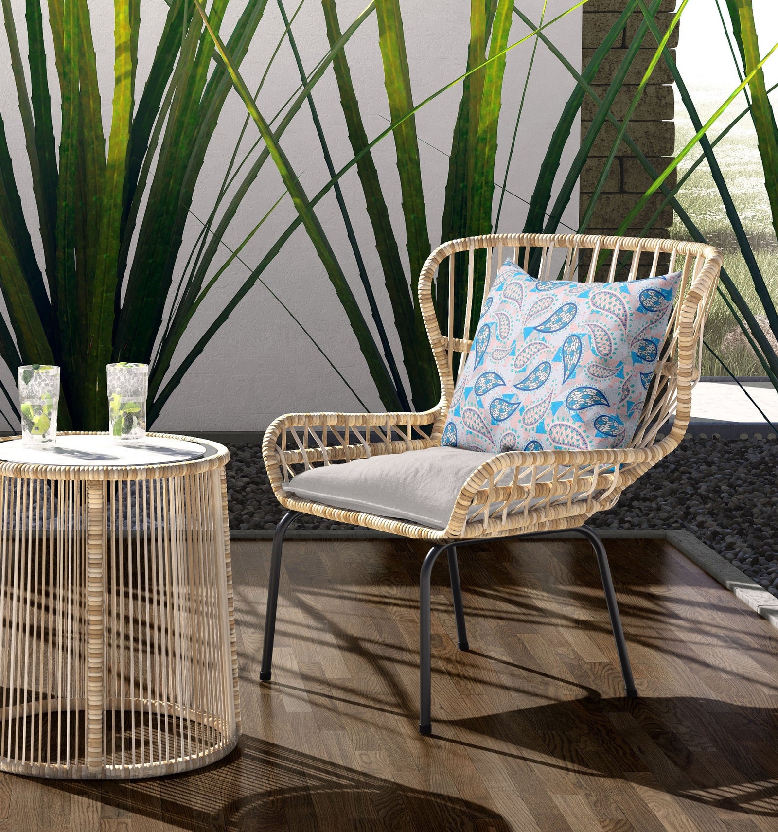 paisley indoor outdoor throw pillow, 16 blue peach boho paisley, outdoor throw pillow, peach boho paisley indoor outdoor, indoor outdoor throw pillow |