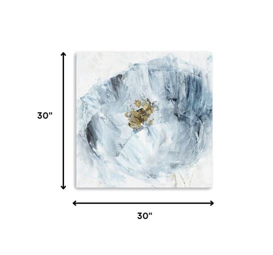 Set your room apart with the beautiful Watercolor Abstract Gray Blue Flower II Canvas Wall Art. Printed on the highest quality gallery grade canvas using the French Giclee technique, this square reproduction has the look and feel of fine-art but is on attainable and desirable canvas. Stretched over a natural pinewood frame, this beautiful watercolor oversized full bloom single flower leaning left in soft shades of blue, ivory, and gray with a pop of gold metallic will be a bold and modern way to bring life to your space.