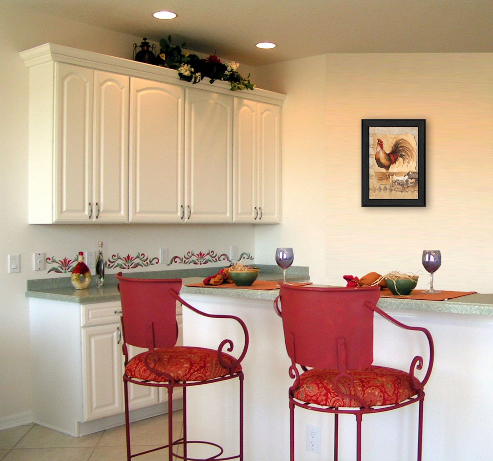 Unique and decorative, this rooster montage ii black framed print wall art will leave a lasting impression. Update your walls with this farm animal decor. This print is a visual artistic expression that allows you to decorate your space in style. Reproduced for you on paper, this hanging decorative accent will be a trendy and fashionable way to dress your walls. Hang on your wall to add some up to date fashion and decoration. Utilize this opportunity to create a focal point in the room with this fabulous wall decor option. 11" H x 15" W x 1" D