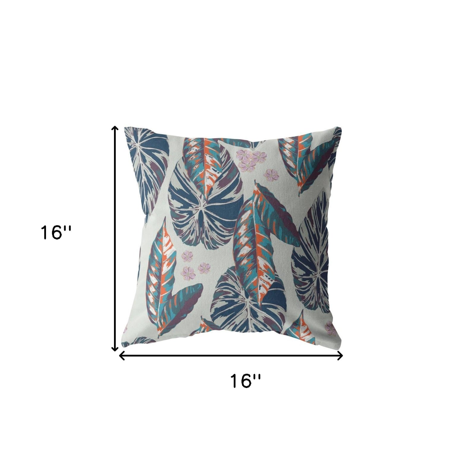 leaf indoor outdoor throw pillow, outdoor throw pillow, indoor outdoor throw pillow, 16 blue gray tropical leaf, tropical leaf indoor outdoor throw |