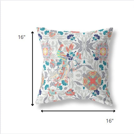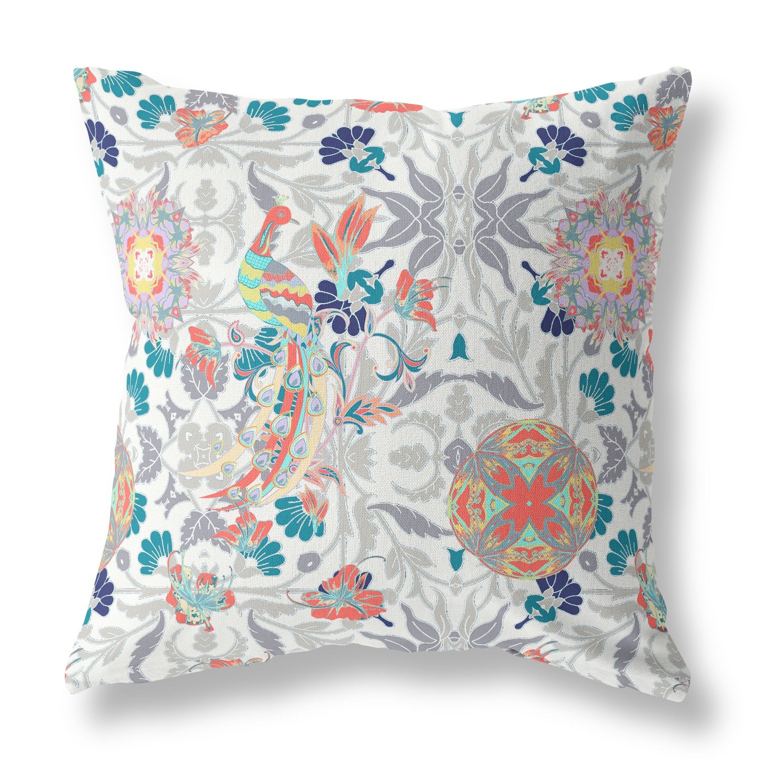 Bring a cheerful touch of nature into your contemporary home with this White Orange Peacock Indoor Outdoor Zippered Throw Pillow. Packed with coral orange, blue, and gray-toned floral filigree and a peacock artwork to accentuate a modern vibe with a traditional flair. Crafted from premium broadcloth fabric, this piece ensures that you get the best quality in terms of looks and comfort while making it an ideal accent for indoor and outdoor use. This pillow is filled with 100% polyester fiber insert, giving it a lavish springy feel with a fluffy nature to provide utmost comfort, while zippered closure makes the cover easy to take off for washing. Pair this beautiful throw pillow with bold or light-toned decors to give a pleasant update to your contemporary home. 16” x 16” x 6”