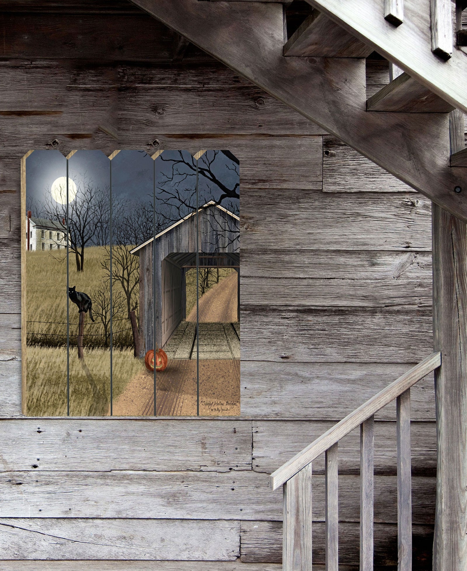 Sleepy Hollow Bridge, Bridge, Covered Bridge, Cat, Black Cat, Pumpkin, Jack Lantern, Halloween, House, Moon, Harvest Moon, Road, Fields, Autumn, Fall, Wood Slat, Picket Fence, Billy Jacobs, Trendy D?cor 4U |