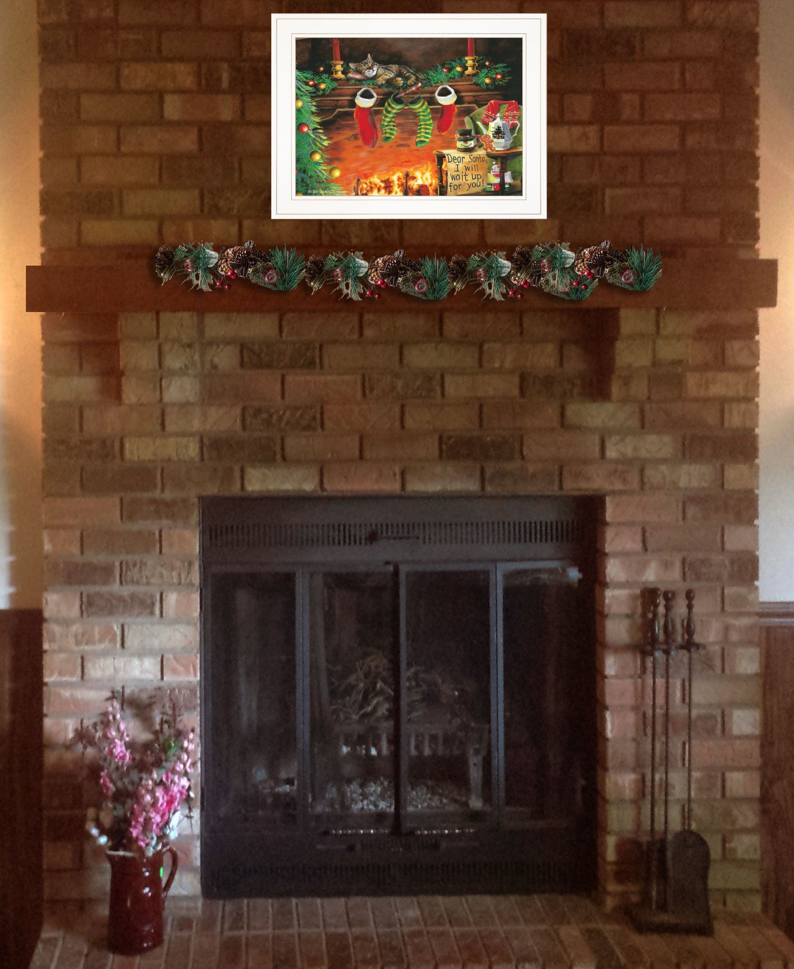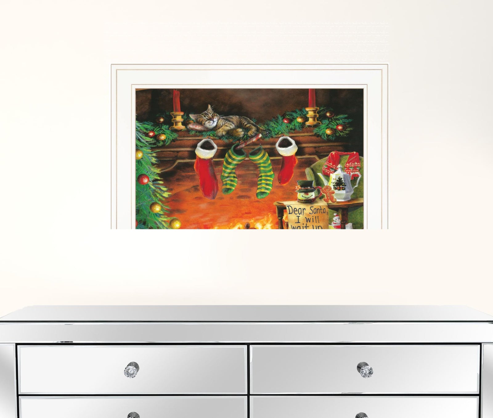 Ed Wargo, Dear Santa, Cookies, Cat, Christmas, Tree, Fire,wall art, wall decor, I Will Wait Up, Ed Wargo, |