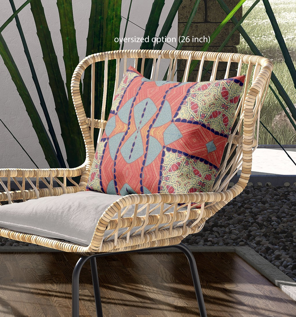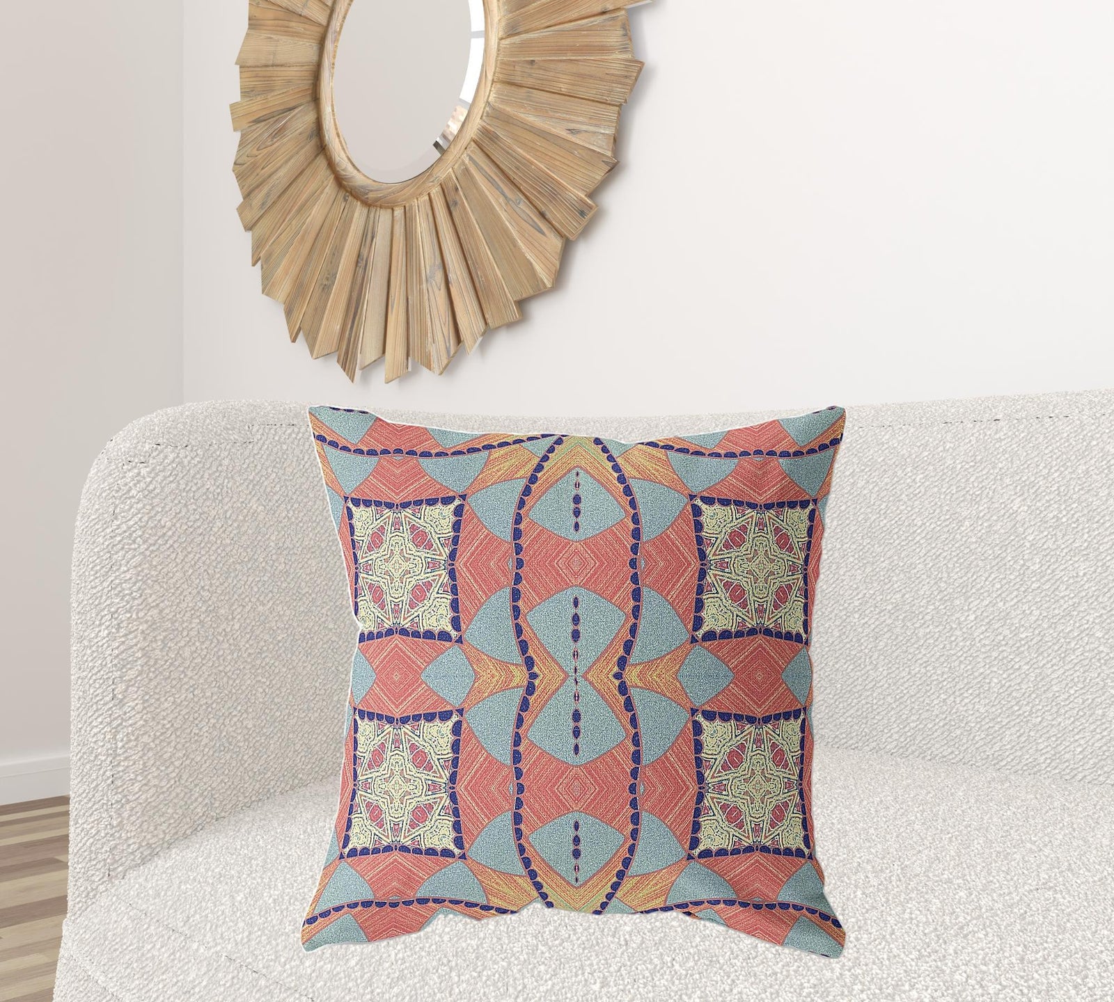 zippered broadcloth geometric throw pillow, broadcloth geometric throw pillow, geometric throw pillow, orange indigo zippered broadcloth geometric, 18" X 18" red orange indigo |