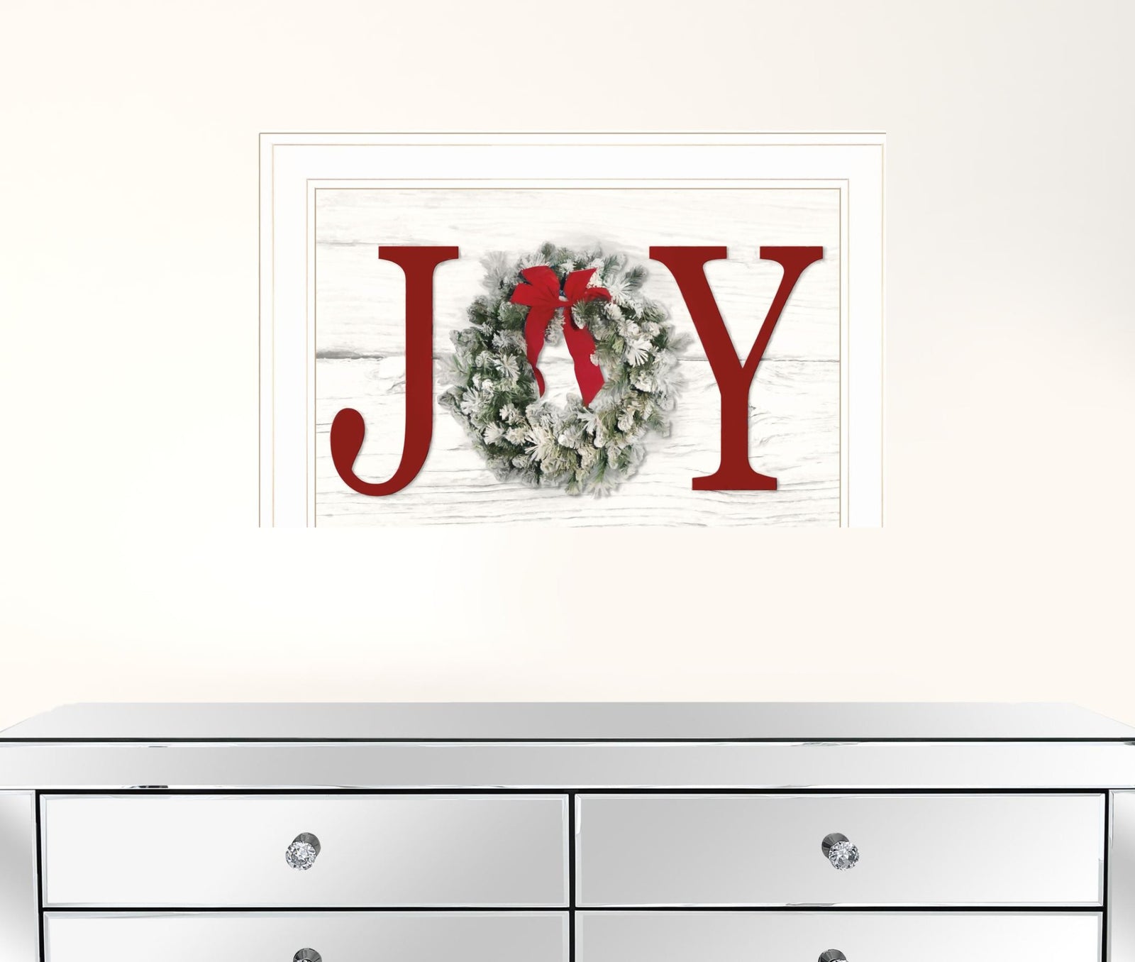 This christmas joy 4 white framed print wall art is the perfect way to celebrate and decorate for the Christmas Season. This print is a visual artistic expression that allows you to decorate your space in style. Reproduced for you on paper, this hanging decorative accent will be a trendy and fashionable way to dress your walls. Hang on your wall to add some up to date fashion and decoration. Instantly liven up your space with this art that brings color and dimension to your walls. 15" H x 21" W x 1" D