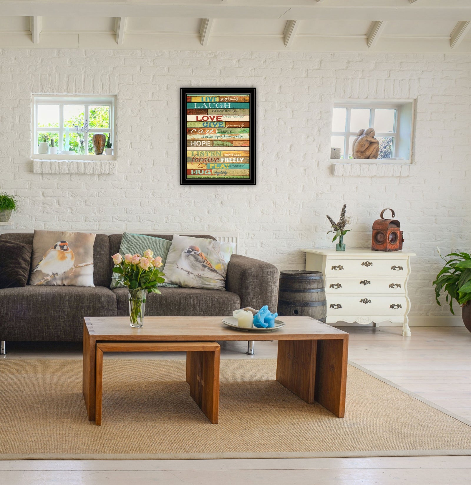 This live joyfully 2 black framed print wall art will add a beautiful decorative accent to your decor. This print is a visual artistic expression that allows you to decorate your space in style. Reproduced for you on paper, this hanging decorative accent will be a trendy and fashionable way to dress your walls. Adding this hanging wall art to your space to make your room feel more finished and attractive. Instantly liven up your space with this art that brings color and dimension to your walls. 27" H x 21" W x 1" D