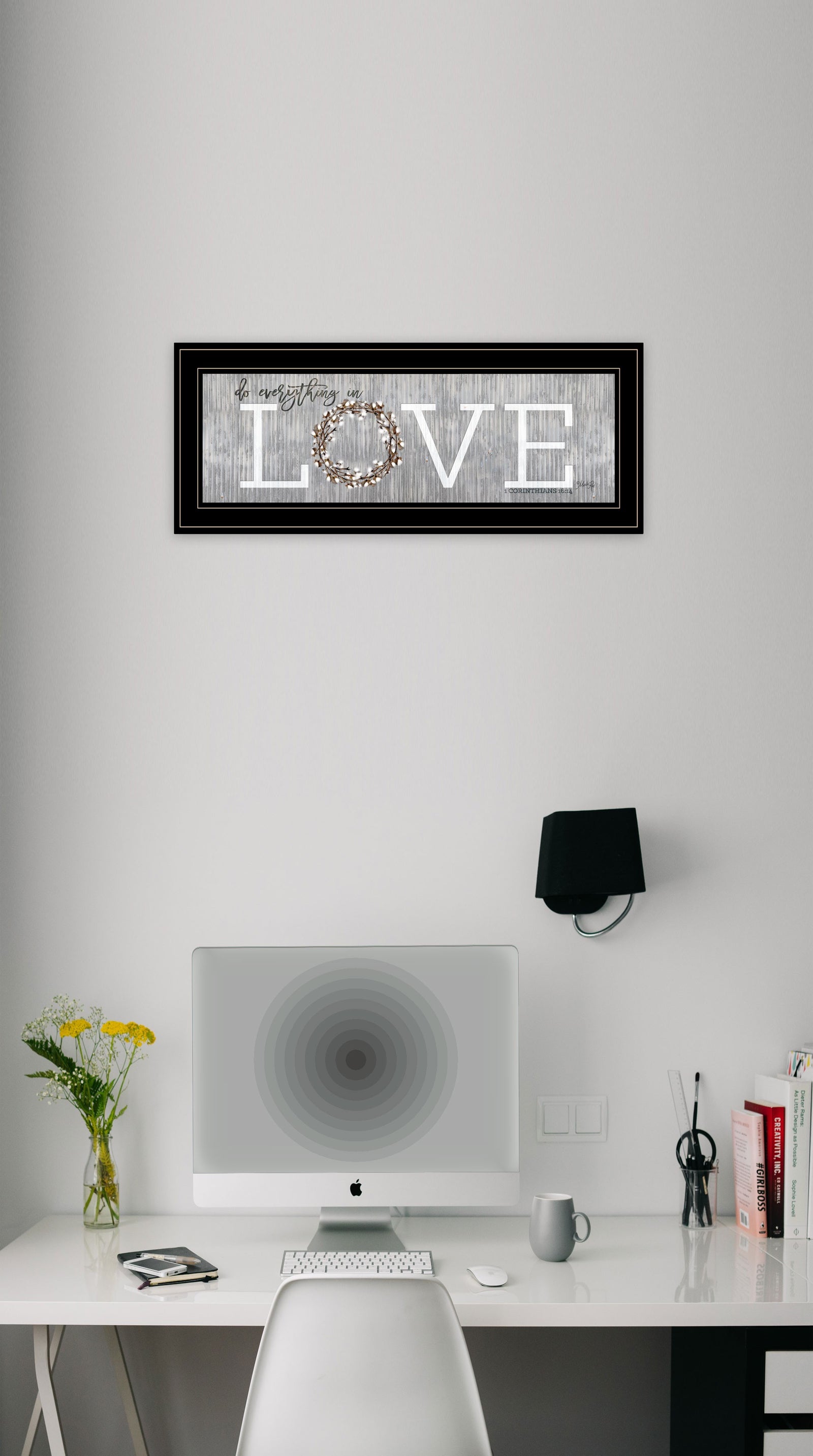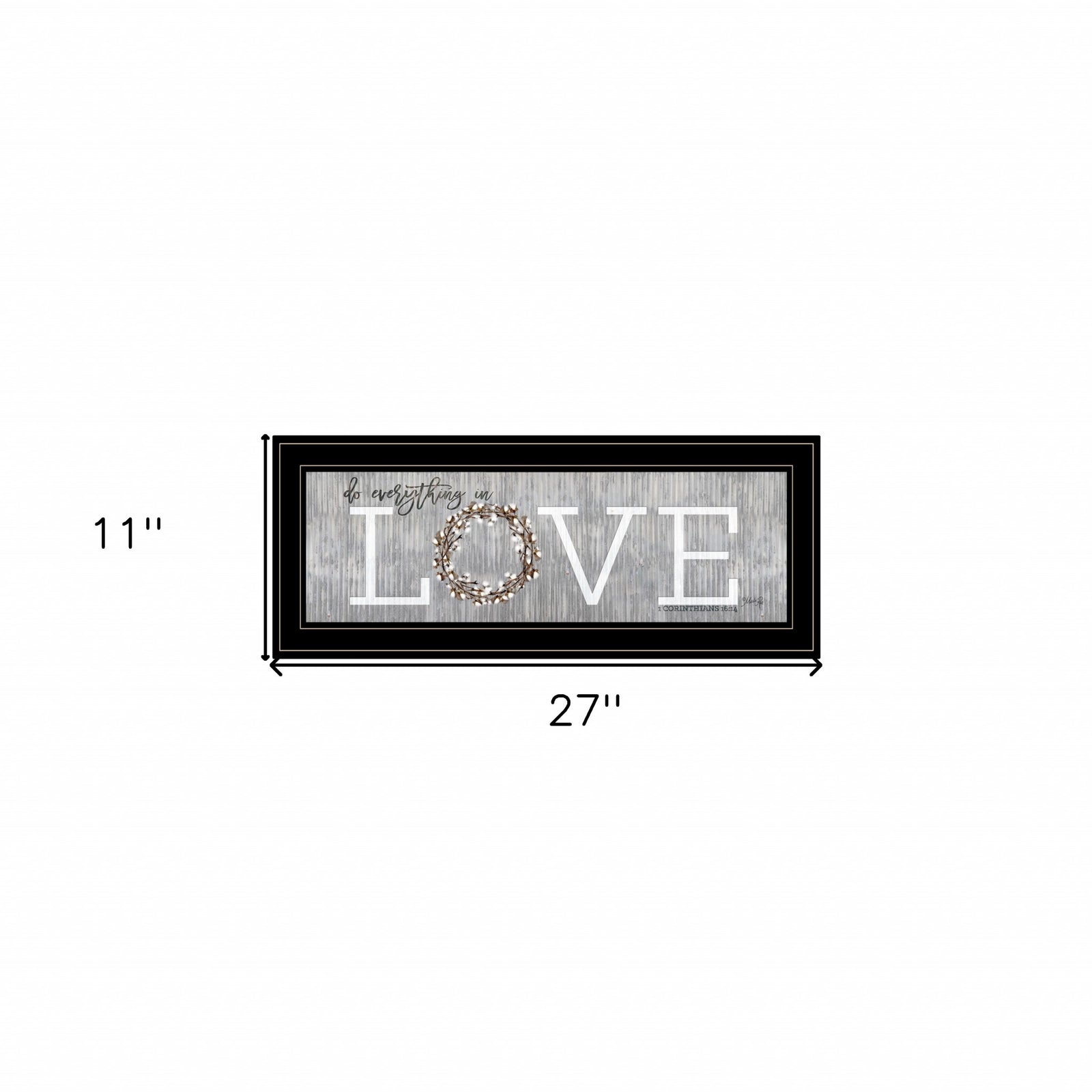 The love - do everything in love 1 black framed print wall art is the perfect decorative accessory for your home. This print is a visual artistic expression that allows you to decorate your space in style. Reproduced for you on paper, this hanging decorative accent will be a trendy and fashionable way to dress your walls. Hang on your wall to add some up to date fashion and decoration. Instantly liven up your space with this art that brings color and dimension to your walls. 11" H x 27" W x 1" D