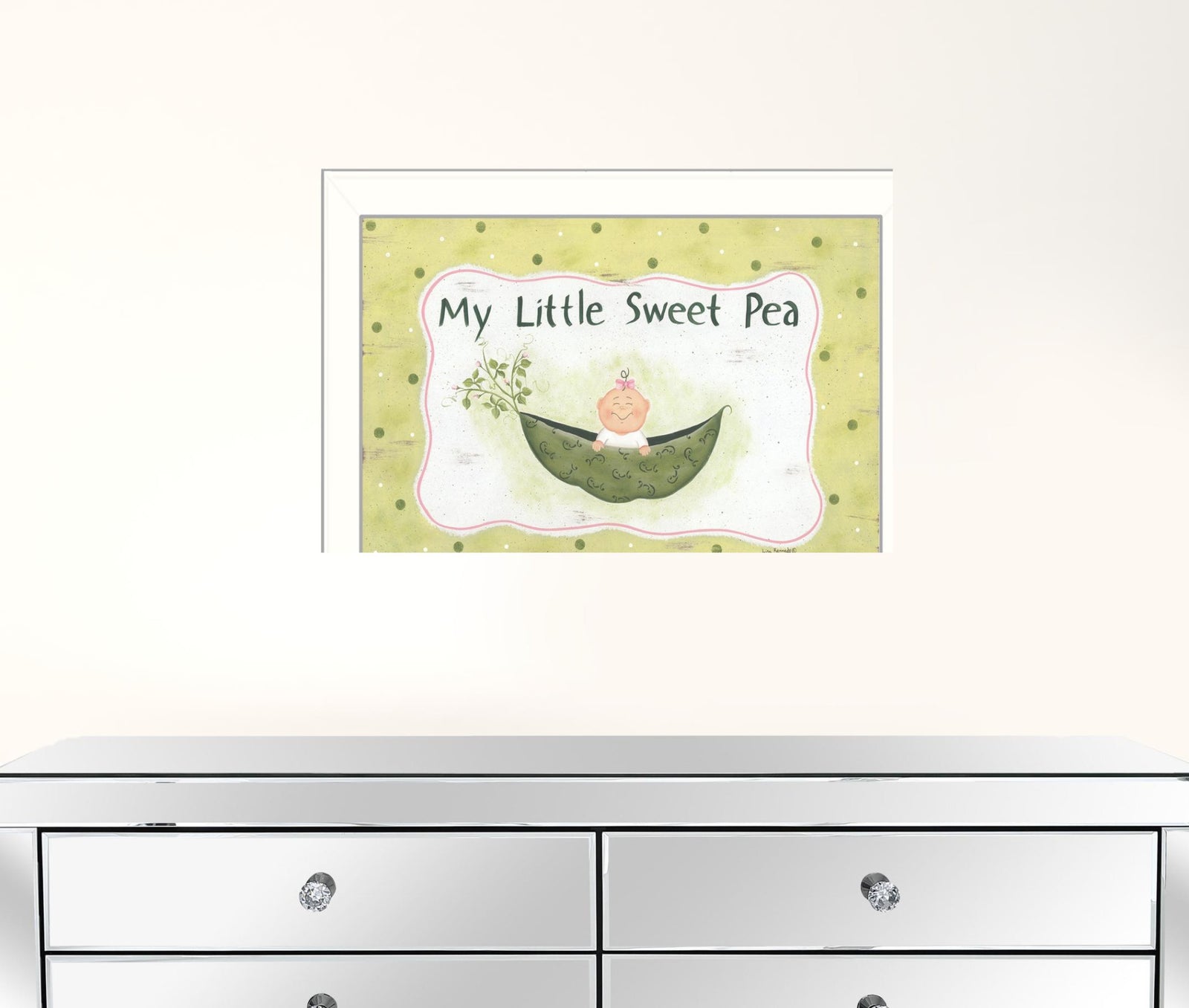Bring some sizzle to your space with this eye-catching my little sweet pea white framed print wall art. This print is a visual artistic expression that allows you to decorate your space in style. Reproduced for you on paper, this hanging decorative accent will be a trendy and fashionable way to dress your walls. Hang on your wall to add some up to date fashion and decoration. Utilize this opportunity to create a focal point in the room with this fabulous wall decor option. 18" H x 14" W x 1" D