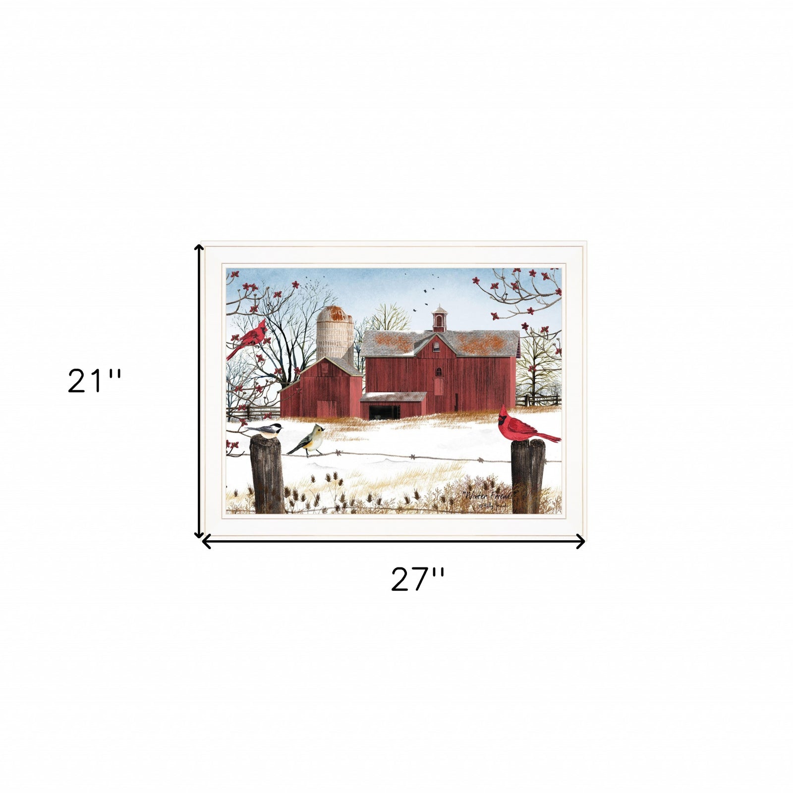 Billy Jacobs, winter, friends, snow, cardinal, cardinals, barn, farm, silo, cupola, rustic, country, Giclee |
