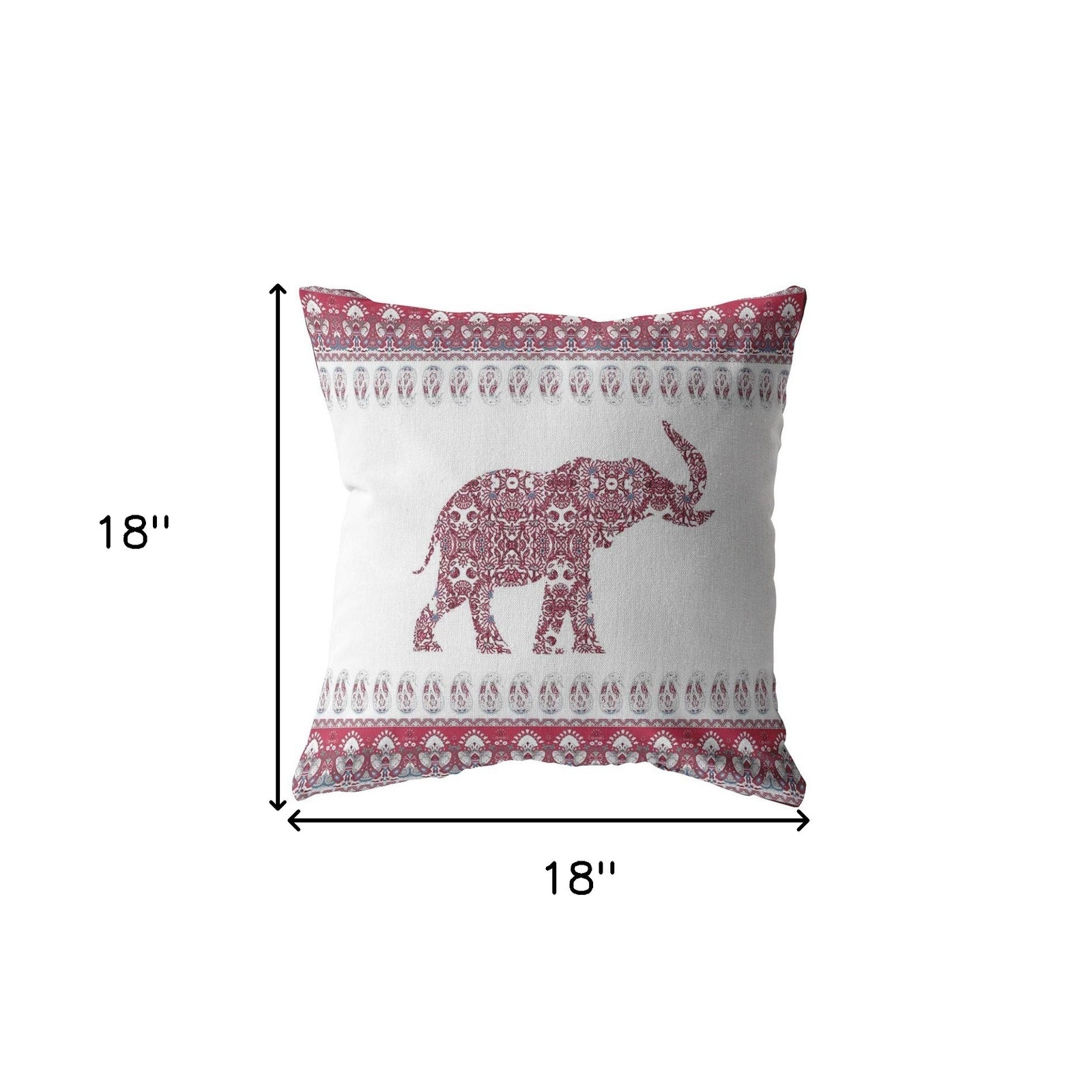 elephant indoor outdoor throw pillow, 18 red white ornate elephant, ornate elephant indoor outdoor throw, outdoor throw pillow, red white ornate elephant indoor |