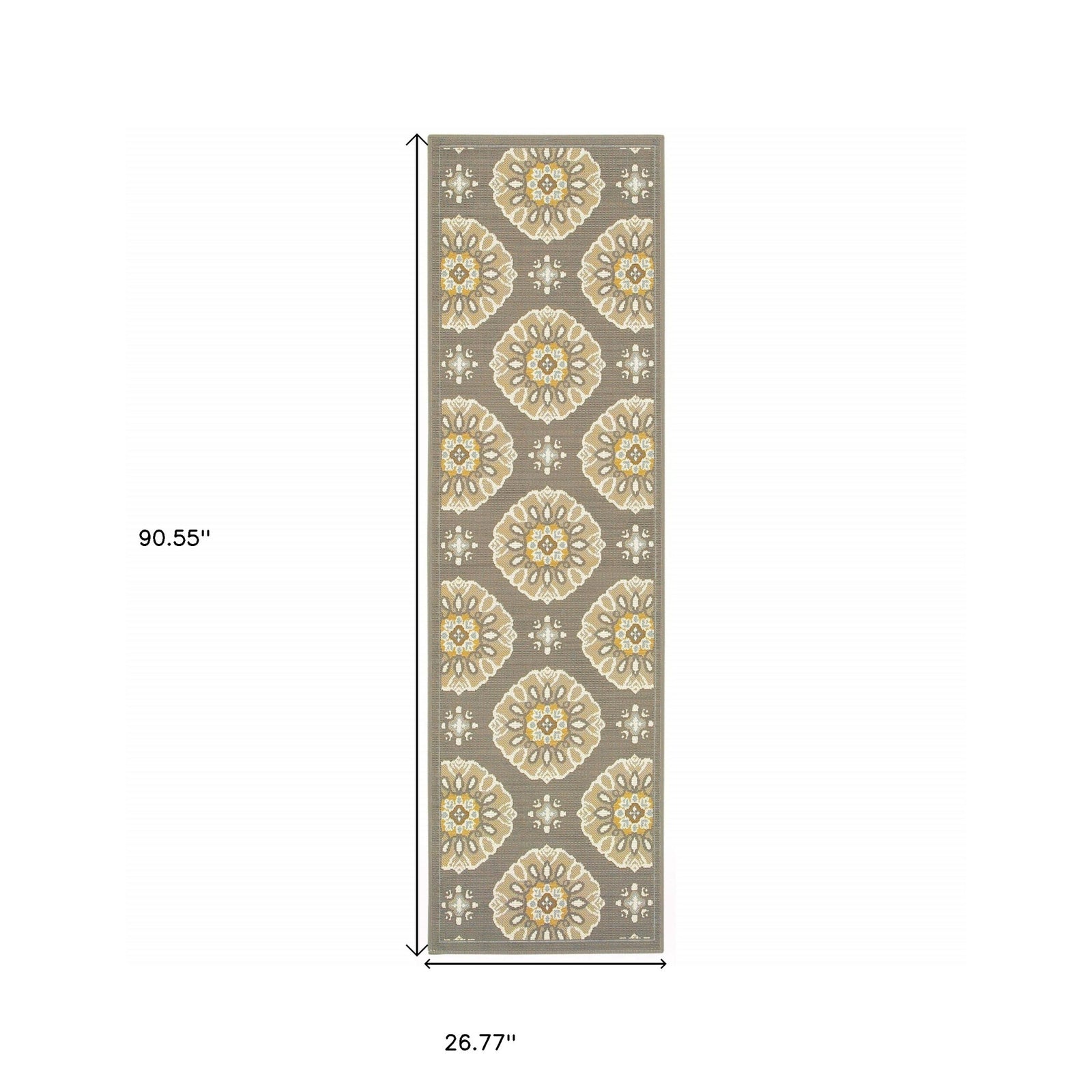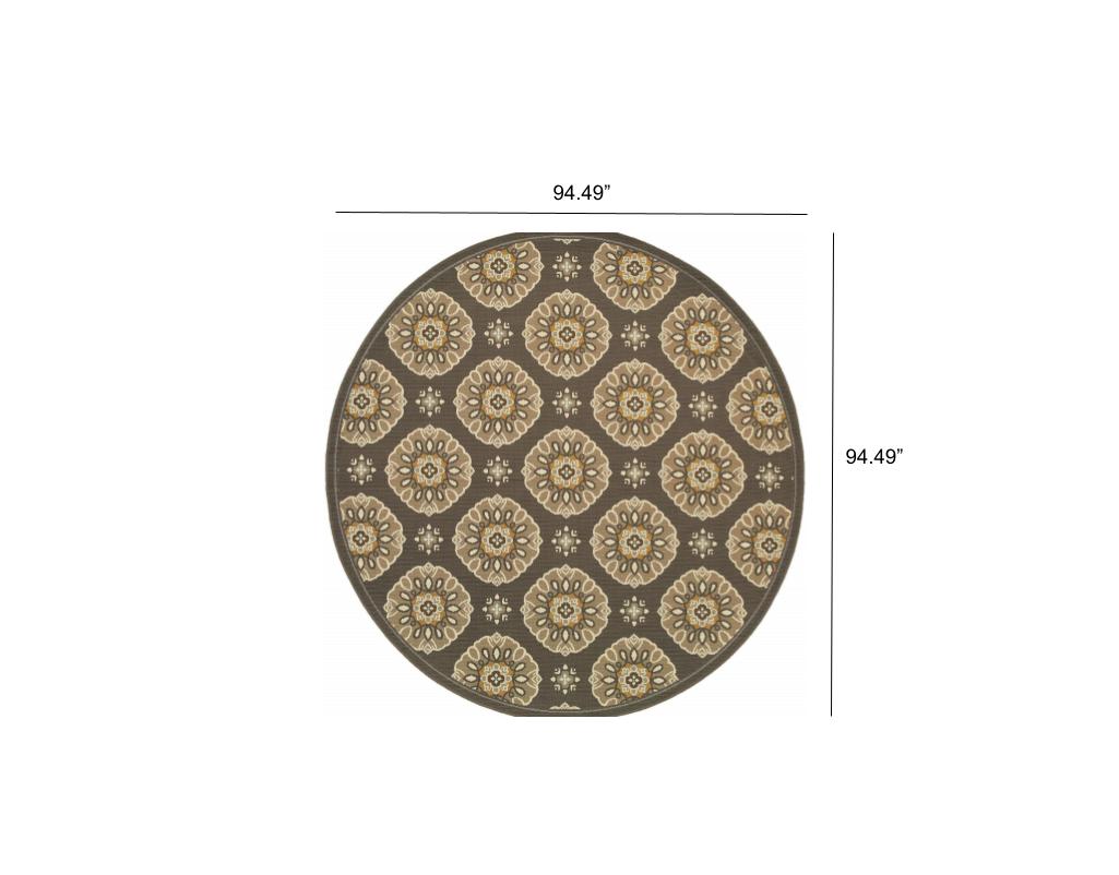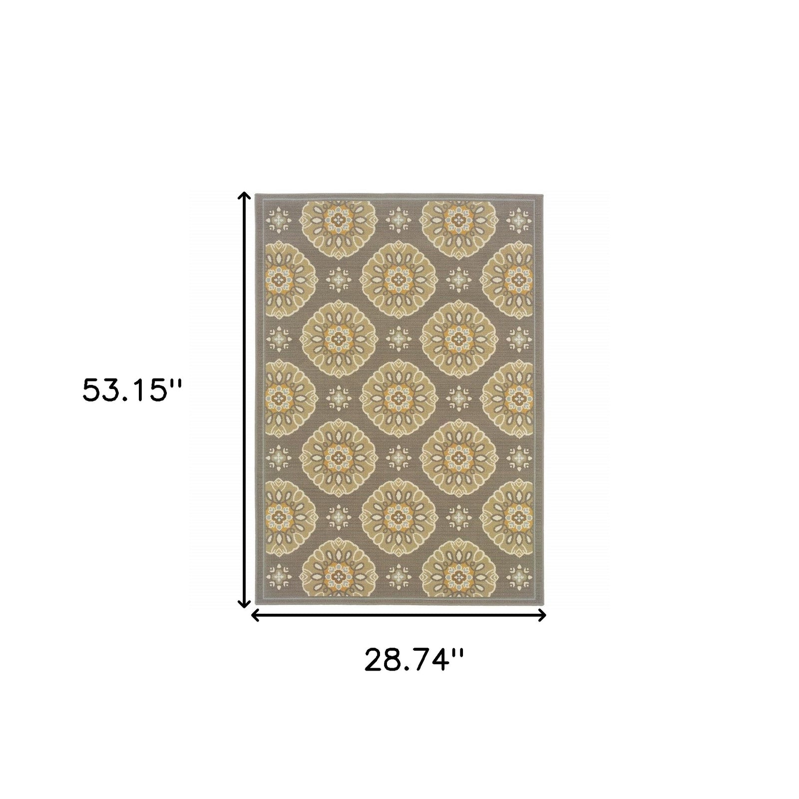 This beautiful Grey Gold Floral Medallion Discs rug will grace your home with neutral toned gray base with brown, beige, gray and pops of gold. It is made of a machine-woven quality of easy-care polypropylene with textural loop construction that adds much surface interest. The colors are on trend with many new fabrics in today’s market; from outdoor furniture to indoor throw pillows, they will add a touch of color and casual sophistication to any space.