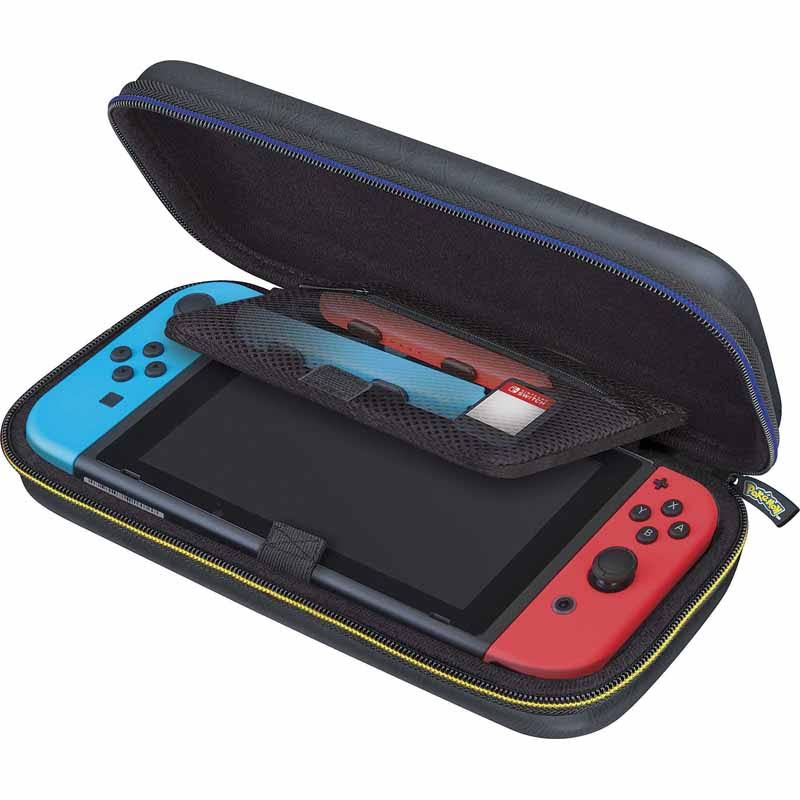 RDS Industries, Inc. is the #1 Nintendo Licensed Switch case manufacturer nationwide. Exterior: Durable hard-shell case made with Ballistic Nylon or PU Leather, comfort grip handle and custom Easy glide zipper. Interior: Specifically Designed to protect the Joy-Con analog sticks, padded screen protection panel, quick access zippered pocket for accessories and features a recessed compartment for game cases. Also included: 2 multi-game cases, each case holds 4 games safely and securely. 2 micro SD card cases, each case holds 1 SD card, each SD card case fits into any section of the multi-game case. RDS Industries Deluxe Travel Case has been approved by Nintendo's high-quality Standards.