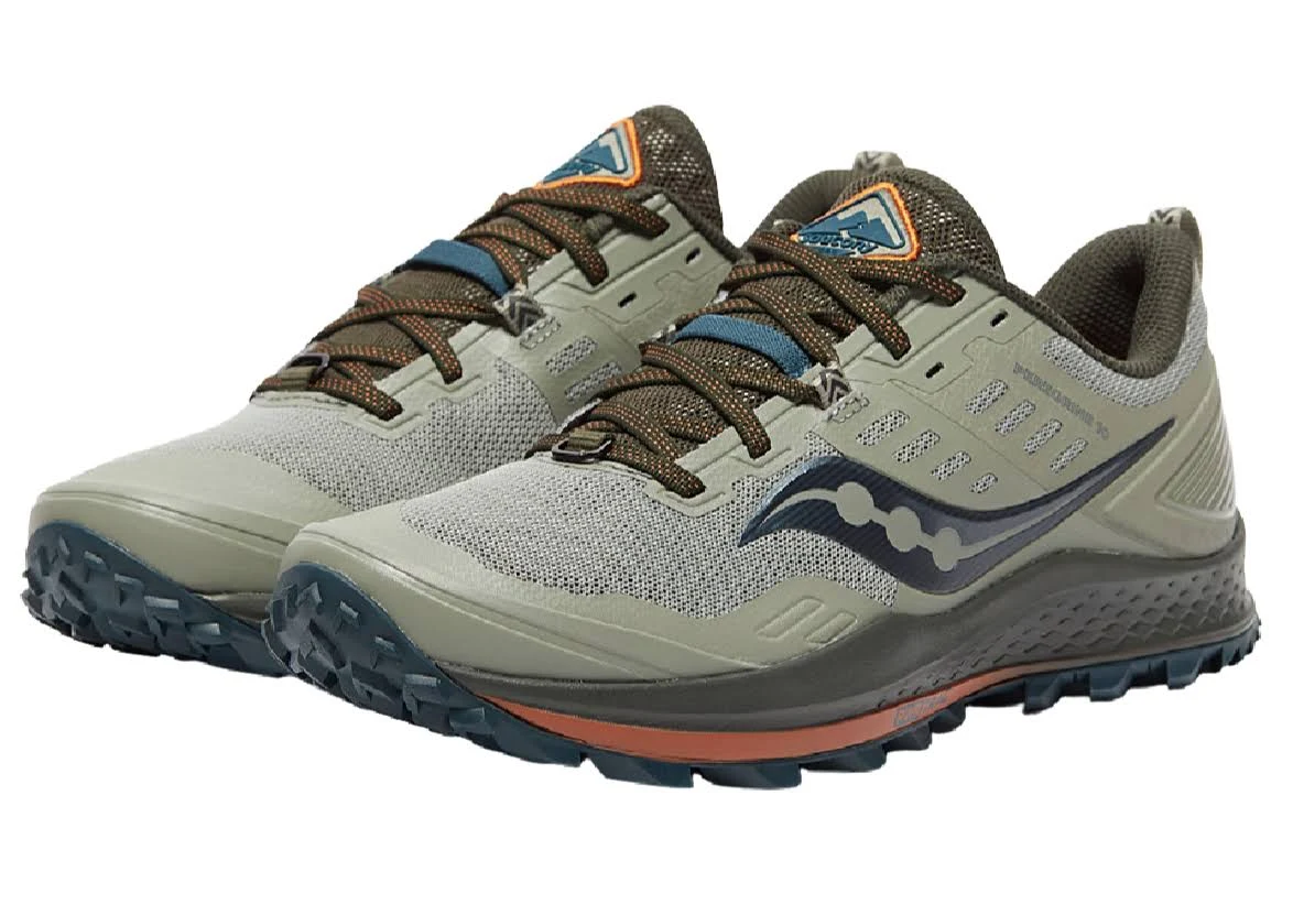 The Peregrine 10 can be relied upon at all times, even off-road in varying conditions and over longer distances. The new PWRRUN cushioning in the midsole as well as the PWRRUN+ topsole provide increased energy recovery and offer the runner a high level of comfort. The PWRTRAC outsole with 6 mm tread depth is, thanks to the abrasion-resistant and non-slip material, ideally suited for a wide variety of surfaces and thus offers a secure grip regardless of whether uphill or downhill. Tip stones or roots do not push through unpleasantly due to the rock plate in the forefoot area and the comfortable cushioning. The trail specific FORMFIT technology allows a perfect grip, whereby the upper material adapts itself pleasantly to the foot and thus ensures a natural rolling motion. The robust upper material has been slightly reinforced in the toe and heel area and thus provides more safety on the trail. Entry aids in the heel allow quick dressing and an elastic band in the midfoot area allows the laces to be safely stowed away. Thanks to the GORE TEX membrane, the Peregrine 10 GTX is not only waterproof but also breathable.