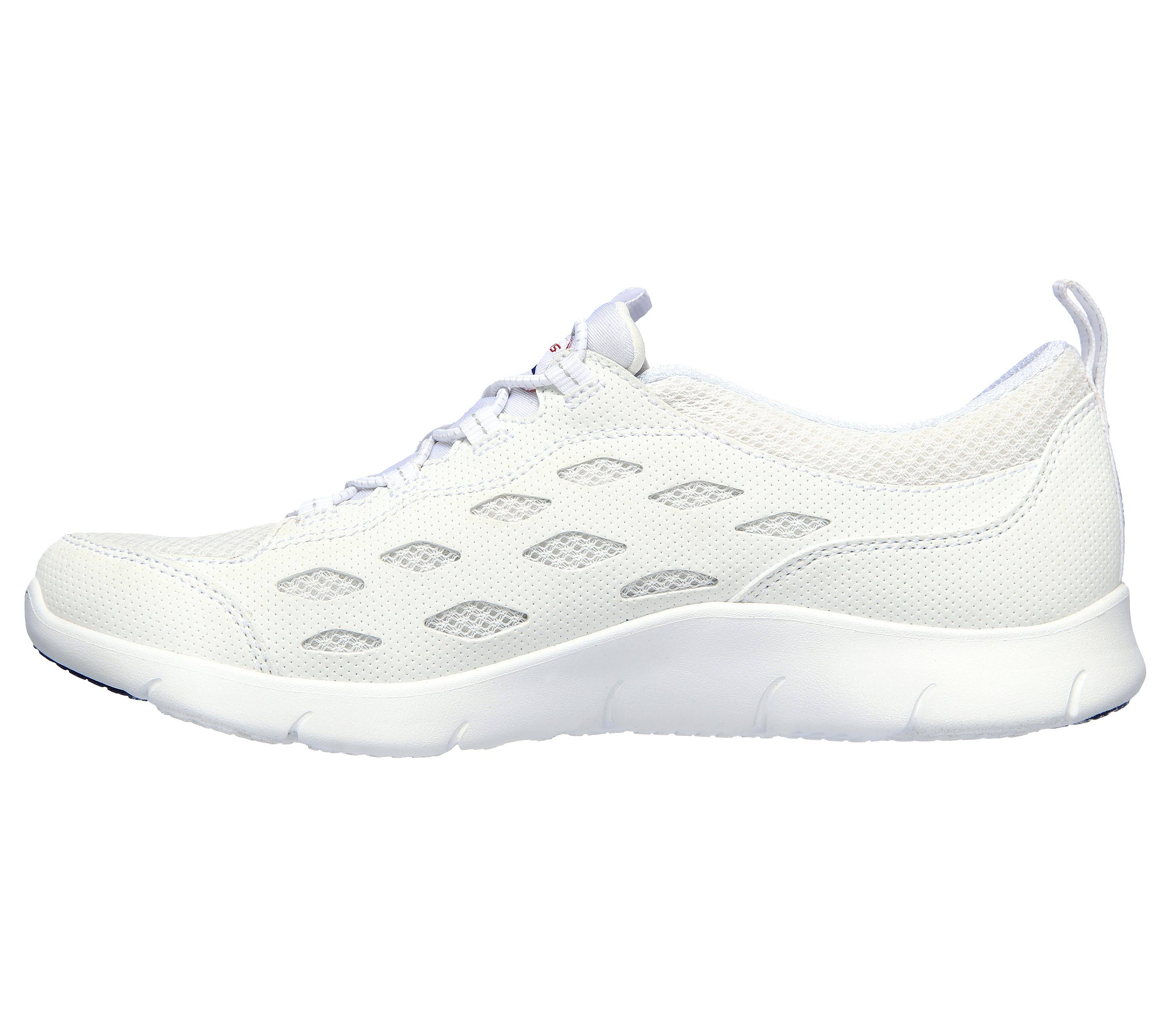Flex in sporty style and supportive comfort wearing the Skechers Arch Fit Refine shoe. This slip-on sneaker features a bungee-laced front in a synthetic duraleather and breathable athletic mesh knit upper, removable cushioned Arch Fit insole and a lightweight cushioned midsole.