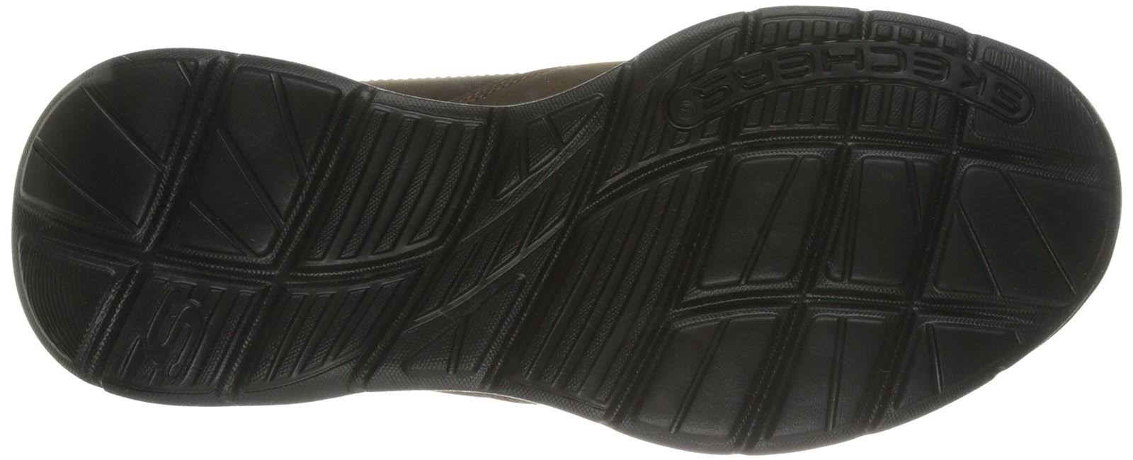 Derive pleasure from the comfort and style of the SKECHERS Relaxed Fit: Glides - Calculous shoe. Smooth oiled leather upper in a slip on casual dress loafer with stitching and overlay accents. Gel InfMemory Foam insole. Stitching accents. Stitched seam accented moc toe front. Side and heel stitching detail. Side SKECHERS logo label and embossed heel S logo. Soft fabric collar panel trim. Loafer-style raised smooth front panel. Dual side elastic fabric panels for easy slip on fit. Padded collar. Soft fabric shoe lining. Relaxed Fit design for a roomy comfortable fit. Gel InfMemory Foam full length cushioned comfort insole. Shock absorbing lightweight supportive midsole. Stripe detail on midsole. 1 1/4 inch heel. Flexible traction outsole.