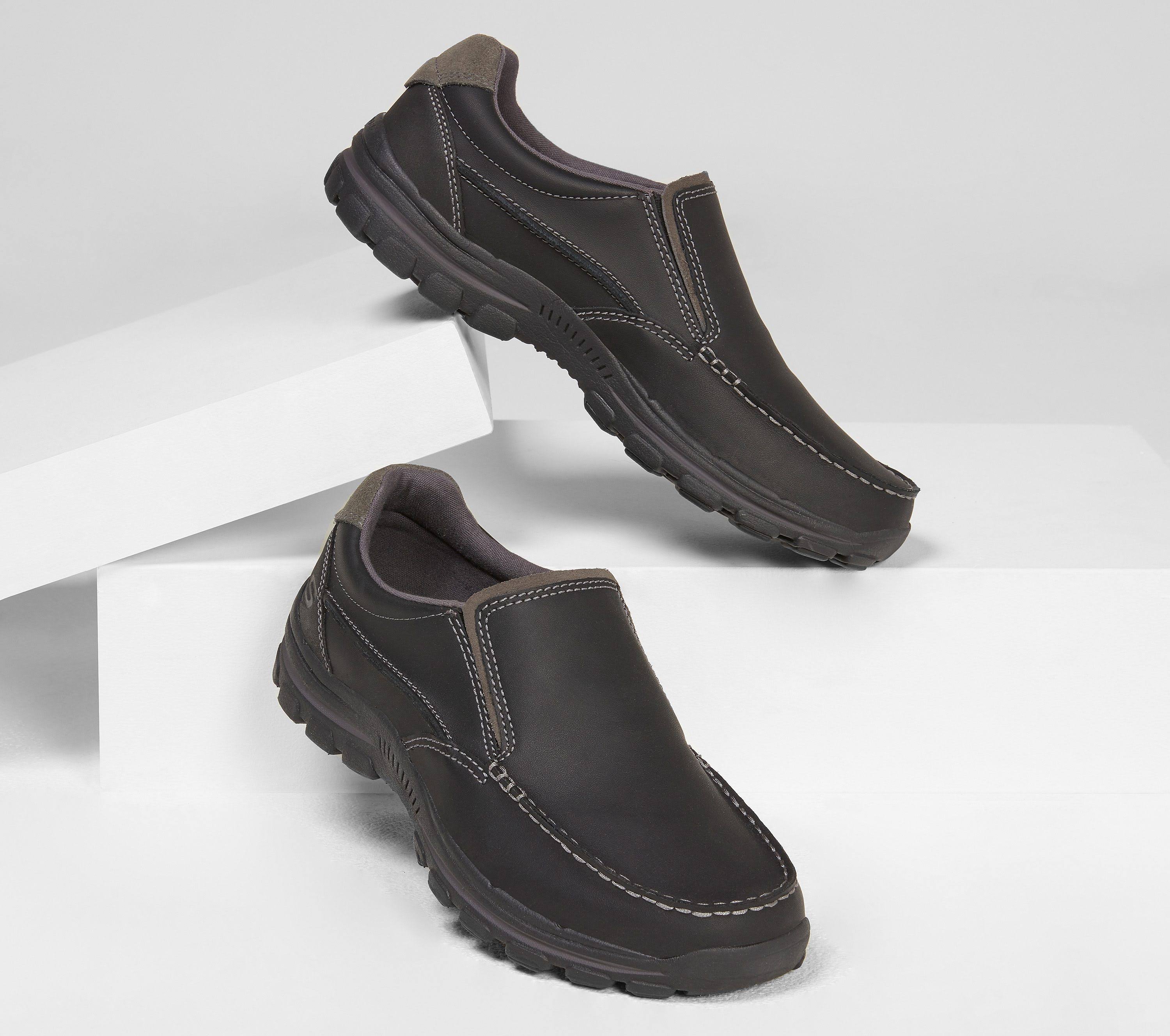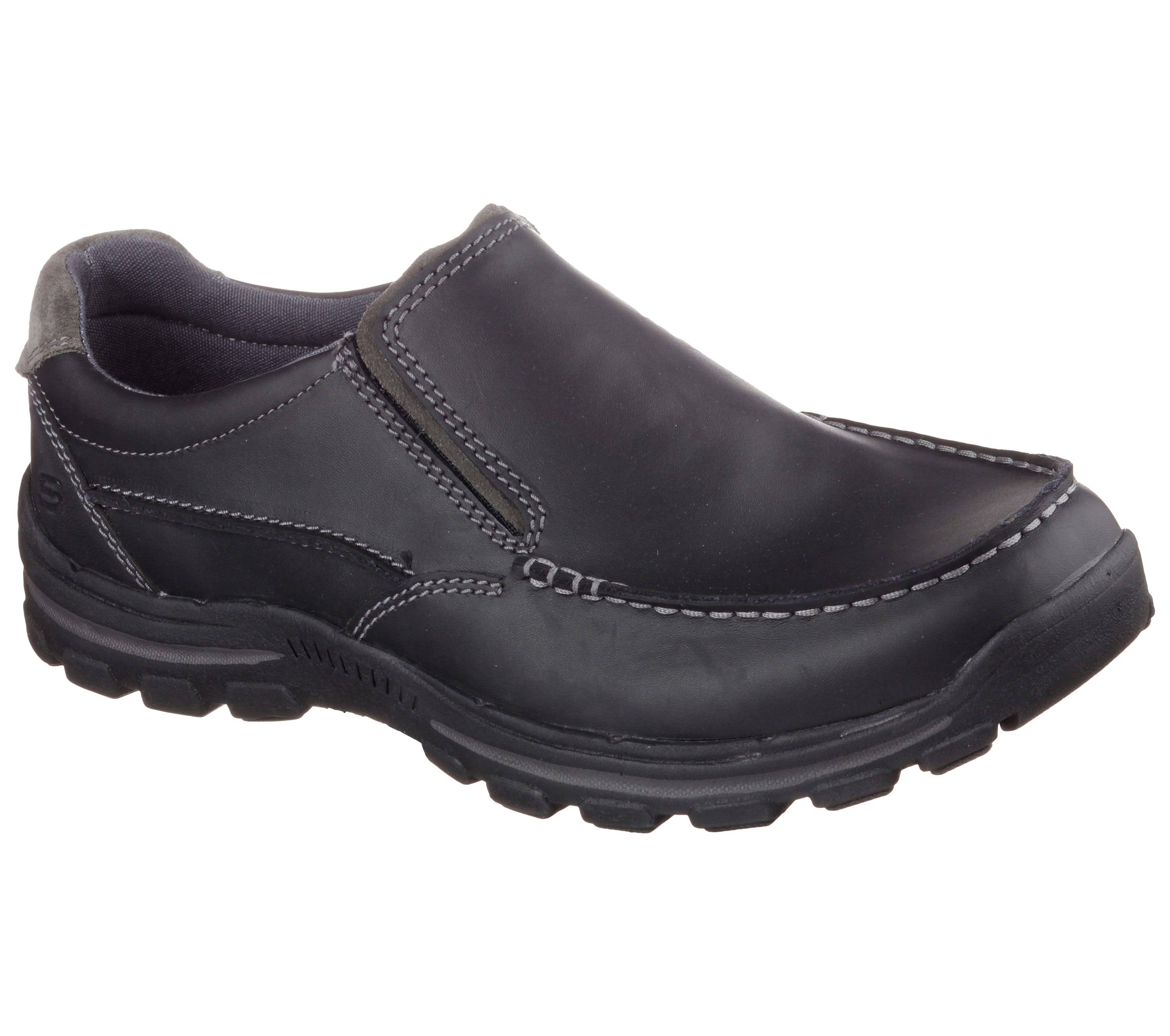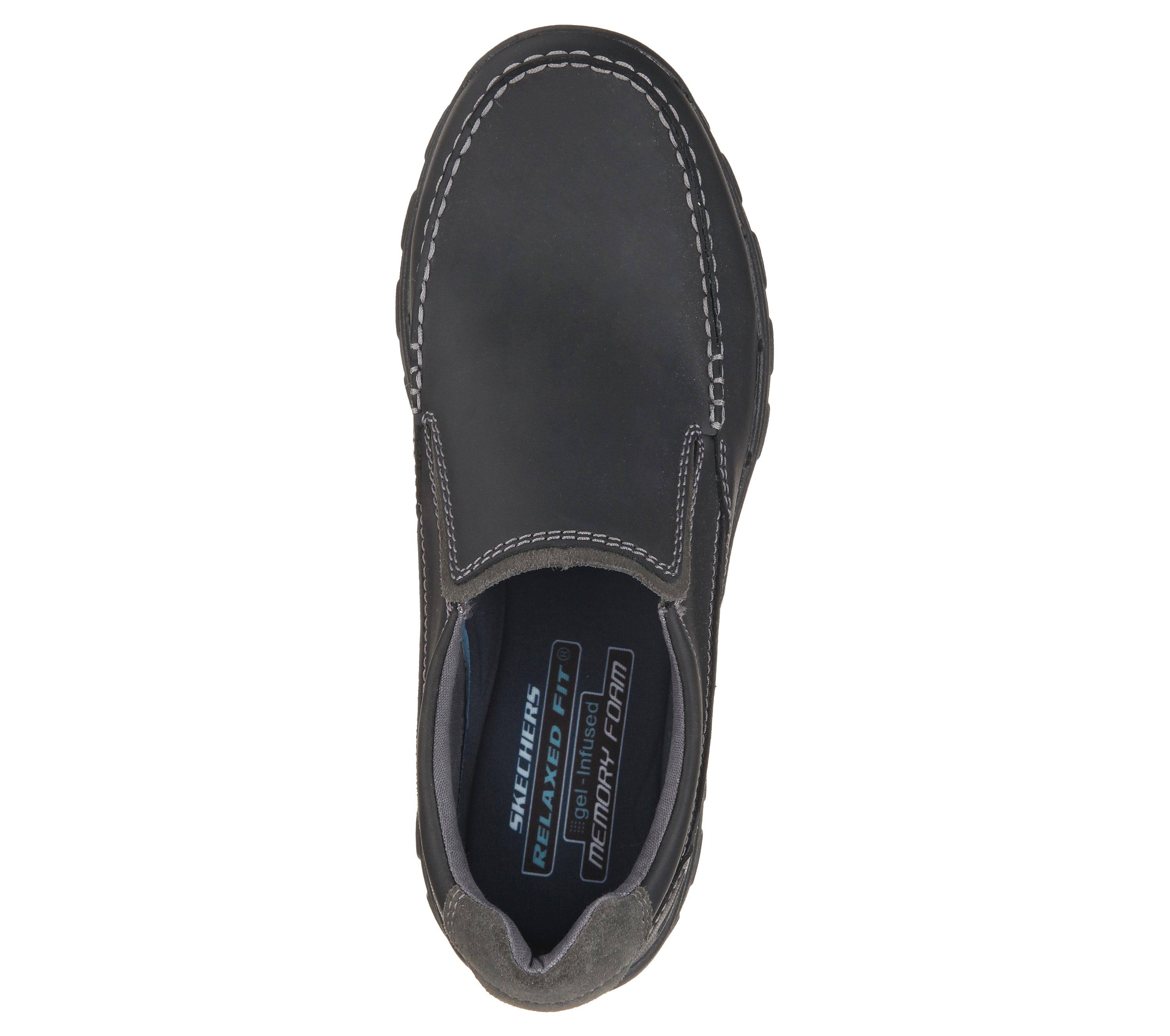Easy slip-on style. Side gore panels for added flex. Padded collar. Logo on the side heel. Soft fabric lining. Features skechers gel infmemory foam insoles. Shock absorbing midsole. Flexible rubber traction outsole.