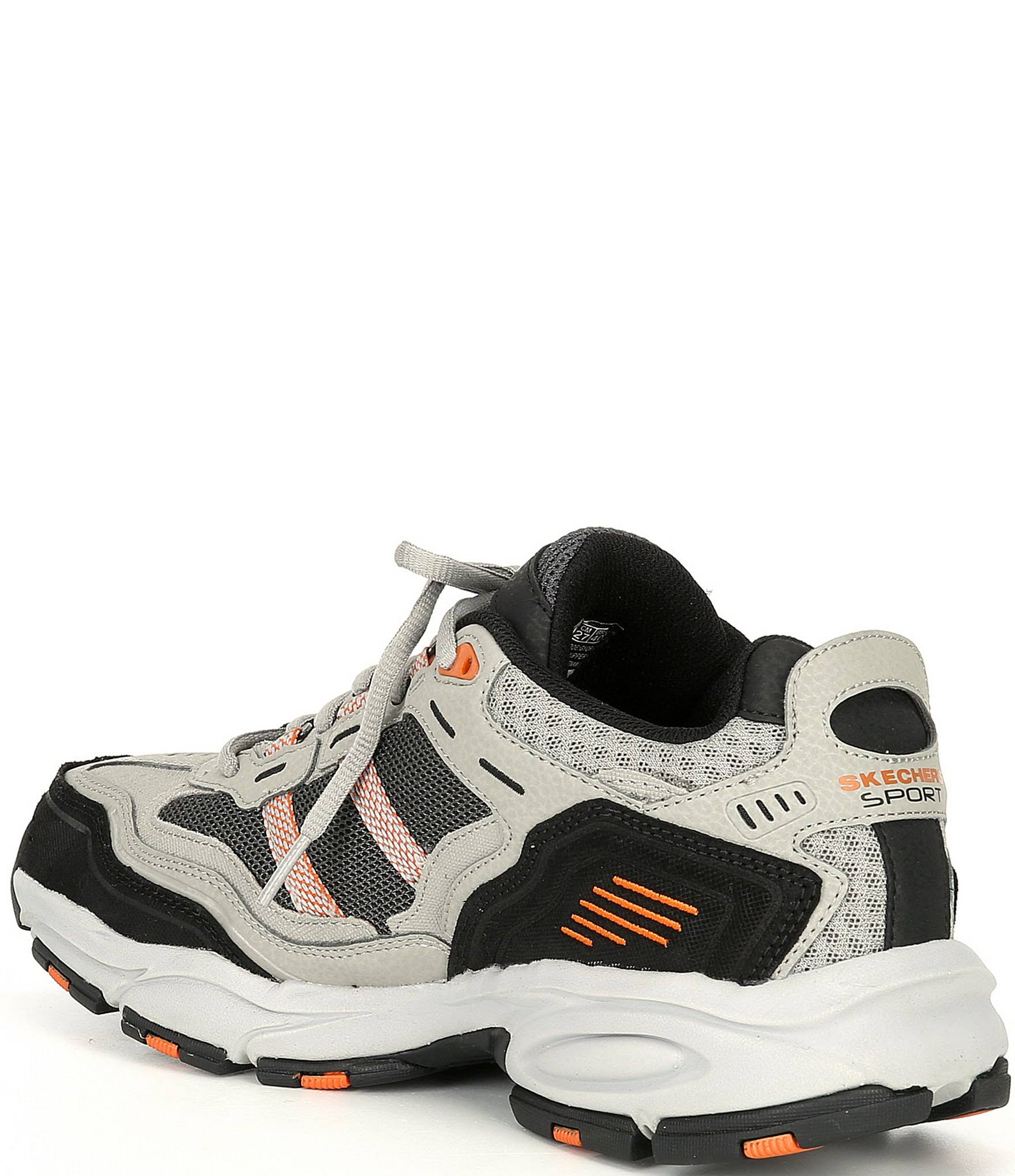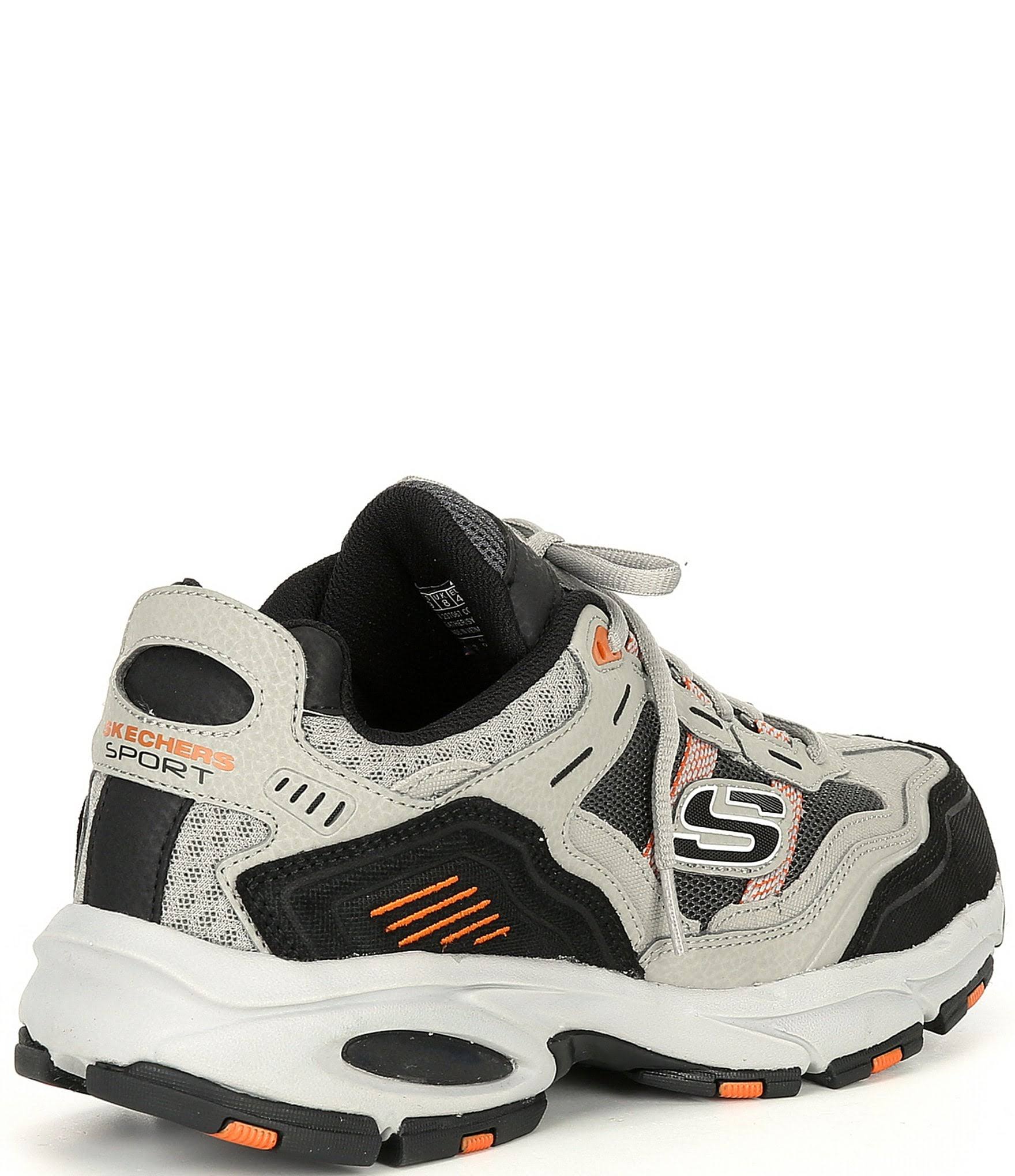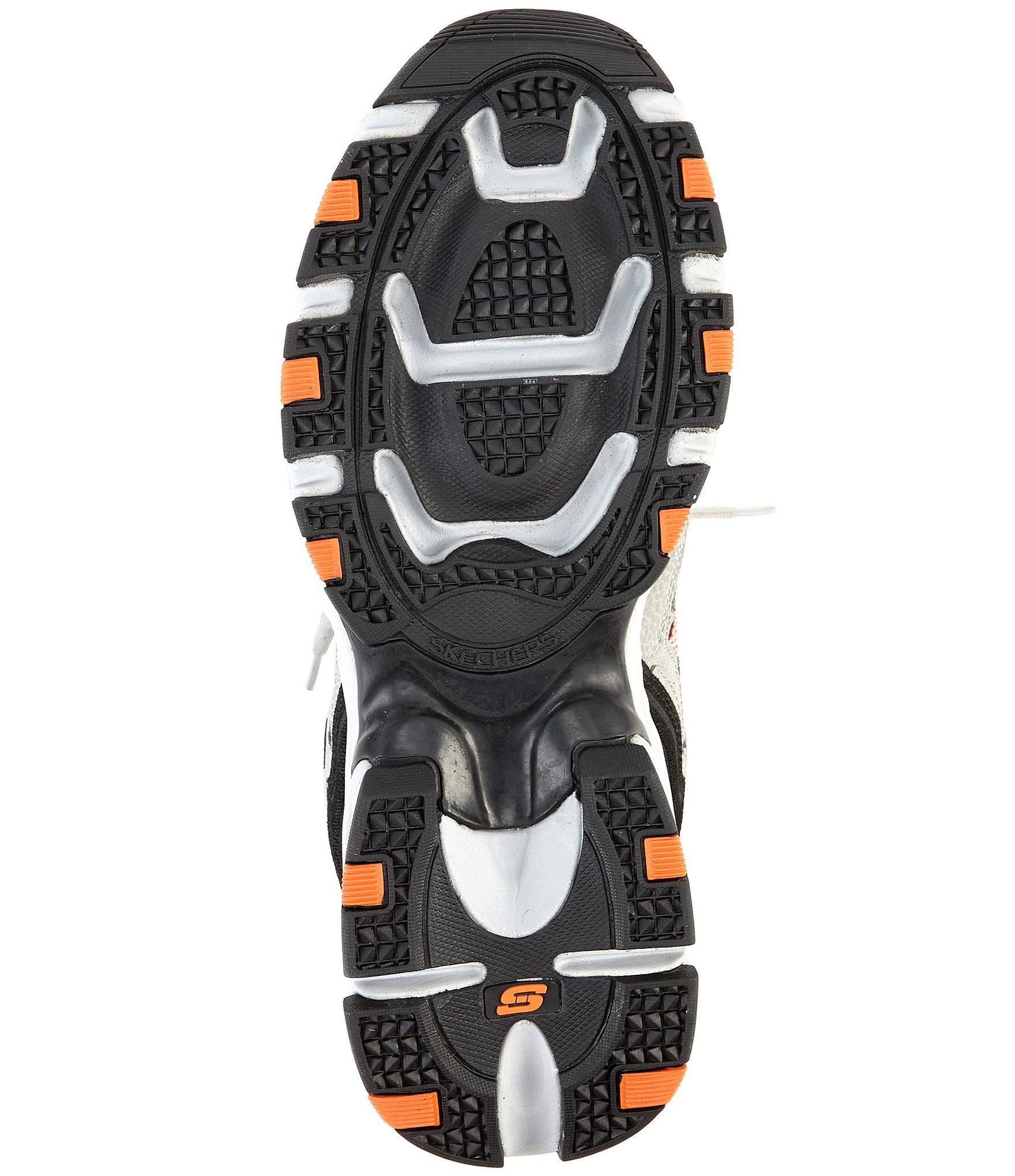 An athletic favorite gets enhanced style and comfort with the Skechers Men's Vigor 2.0. This athletic training shoe features a smooth leather upper in a lace-up style with stitching, overlay and perforation accents. Mesh fabric panels at the sides, collar, and tongue deliver a cooling effect, and the cushioned Memory Foam footbed provides all-day foot comfort. Smooth leather upper with textured synthetic overlays and stitching accents. Traditional lace-up closure with metal and fabric eyelets. Padded tongue and collar. Soft fabric shoe lining. Air Cooled Memory Foam cushioned comfort insole. Mesh fabric panels for a cooling effect. Shock-absorbing midsole. Flexible rubber traction outsole with color accent detail. Stabilized midfoot and heel. Heel overlay with pull-on heel loop. Side S logo. Accent color stitching and emboss trim. Perforation accents on front and sides. 1 12 in. heel height. Spot clean. Imported.