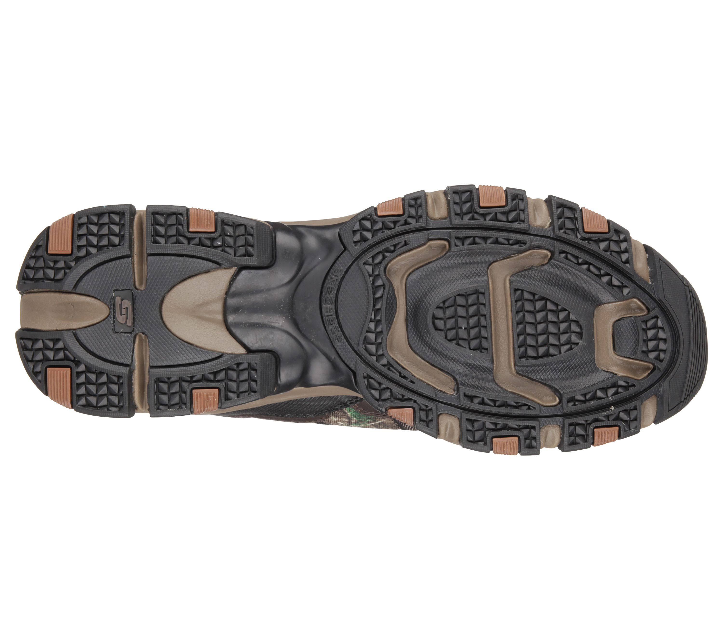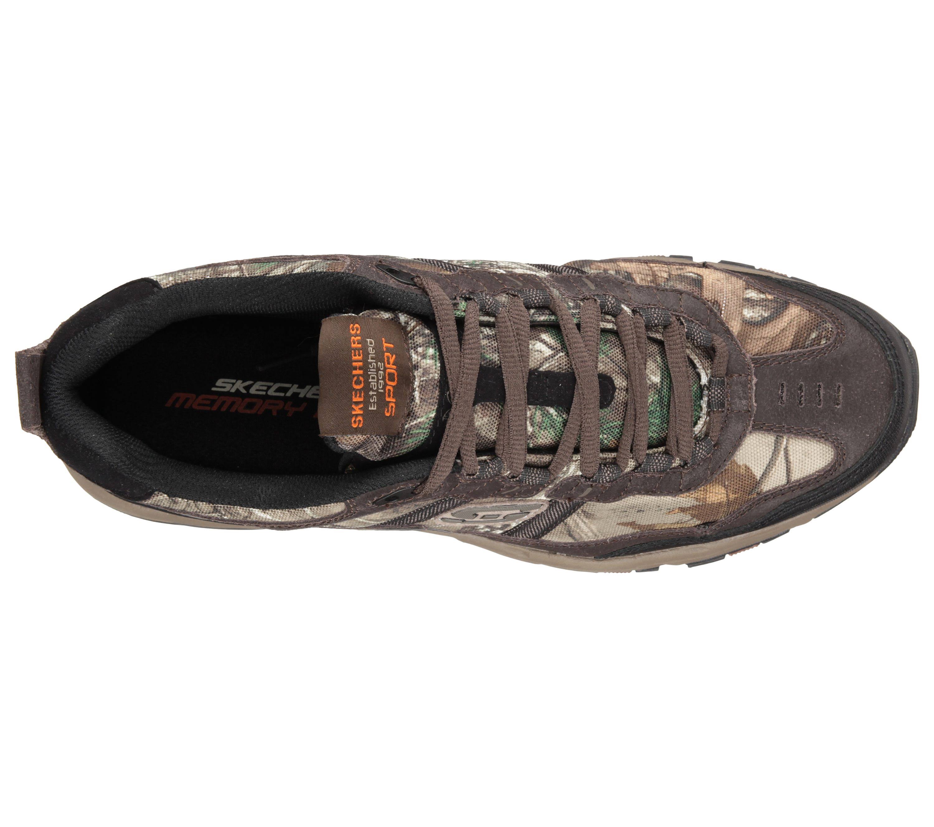 Rugged style and long lasting comfort grow strong in the SKECHERS Vigor 2.0 - The Beard shoe. Sport suede, synthetic and camo print mesh fabric in a lace up athletic trail and training sneaker with stitching and overlay accents. Memory Foam insole. Padded collar and tongue. Soft fabric shoe lining. Memory Foam cushioned comfort insole. Shock absorbing supportive midsole. 1 1/2 inch built in heel. Flexible high traction rubber outsole.