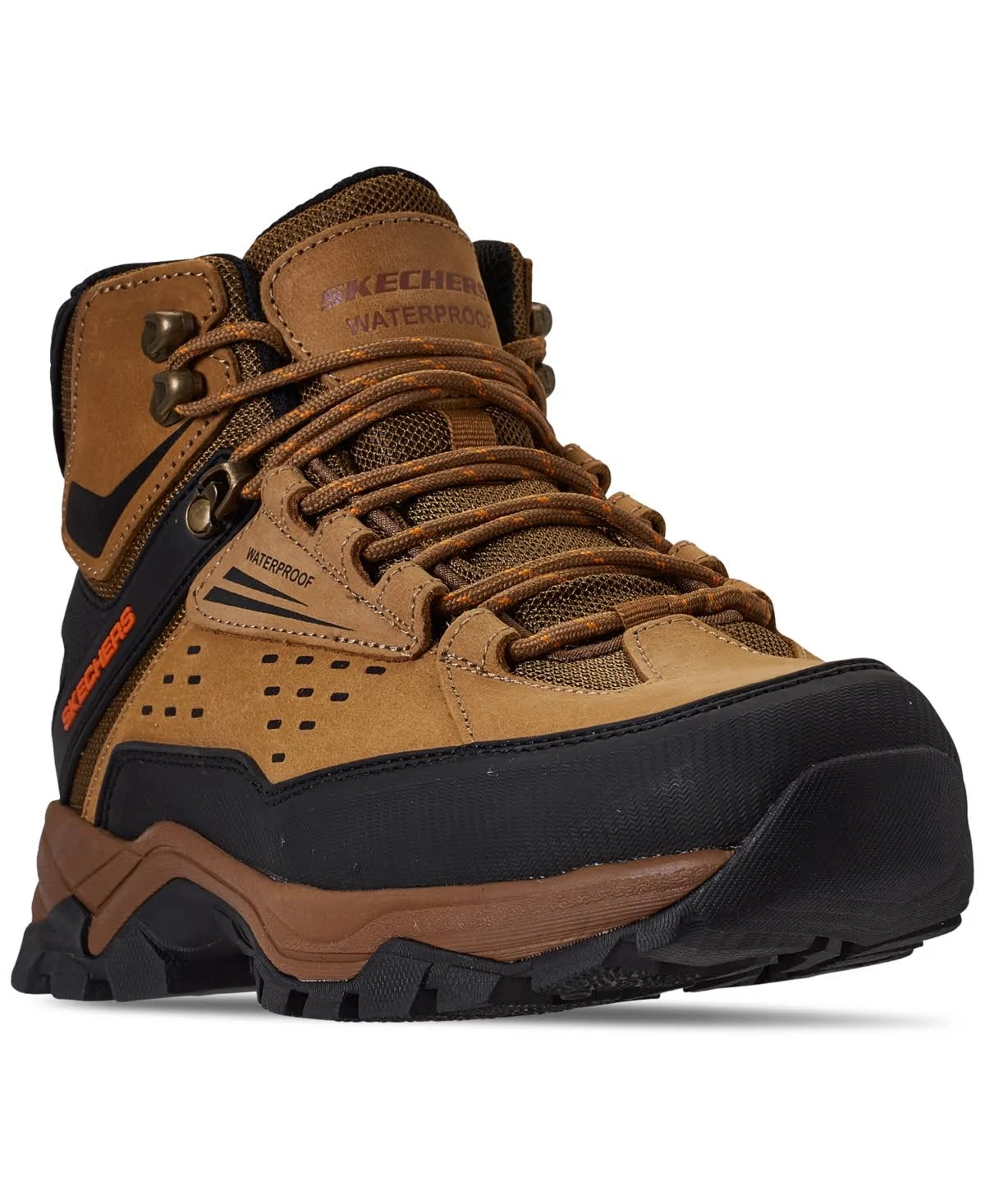 Tackle the outdoors while staying comfortable in the Men's Skechers Polano Norwood Hiking Boot. Waterproof leather upper in an outdoor boot style with a round toe. Slip-on entry with lace-up closure. Heel pull tab. Padded collar and tongue for increased comfort. Perforated design on side panels. Relaxed Fit design for a comfortable fit. Soft fabric lining with Air Cooled Memory Foam cushioned insole. Rubber traction outsole. 65755.