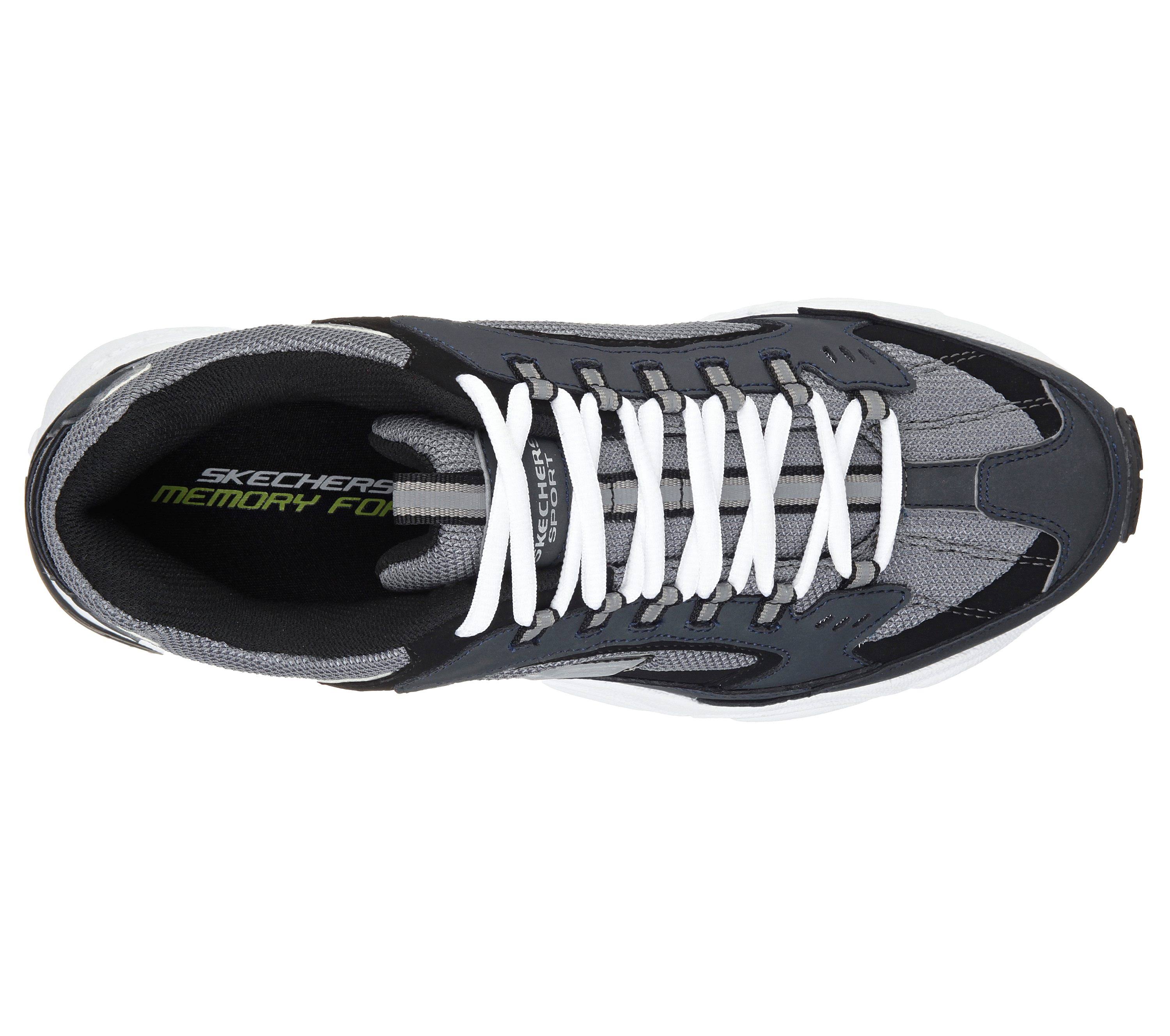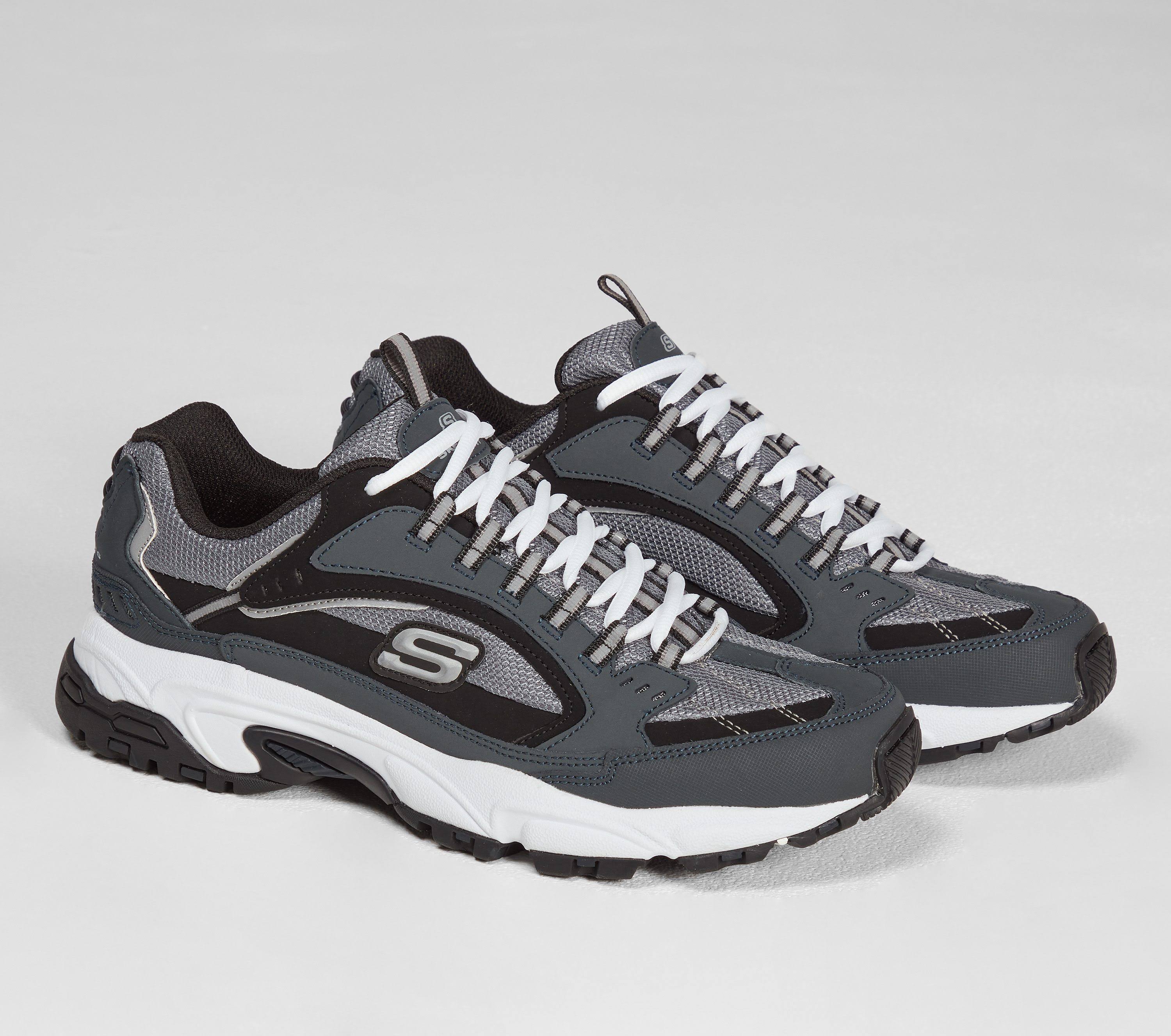 Kick around town in the daylong comfort of the SKECHERS Stamina Cutback sneaker. Nubuck leather and synthetic upper materials. Lace-up closure. Reflective hits add a boost of visibility in low lighting. Plush tongue and collar. Breathable fabric lining offers a great in-shoe feel. Memory foam insole. Stabilizer mid-foot design. Flexible, high-traction rubber outsole. Imported. Measurements: Weight: 13 oz Product measurements were taken using size 8, width D - Medium. Please note that measurements may vary by size. Weight of footwear is based on a single item, not a pair.
