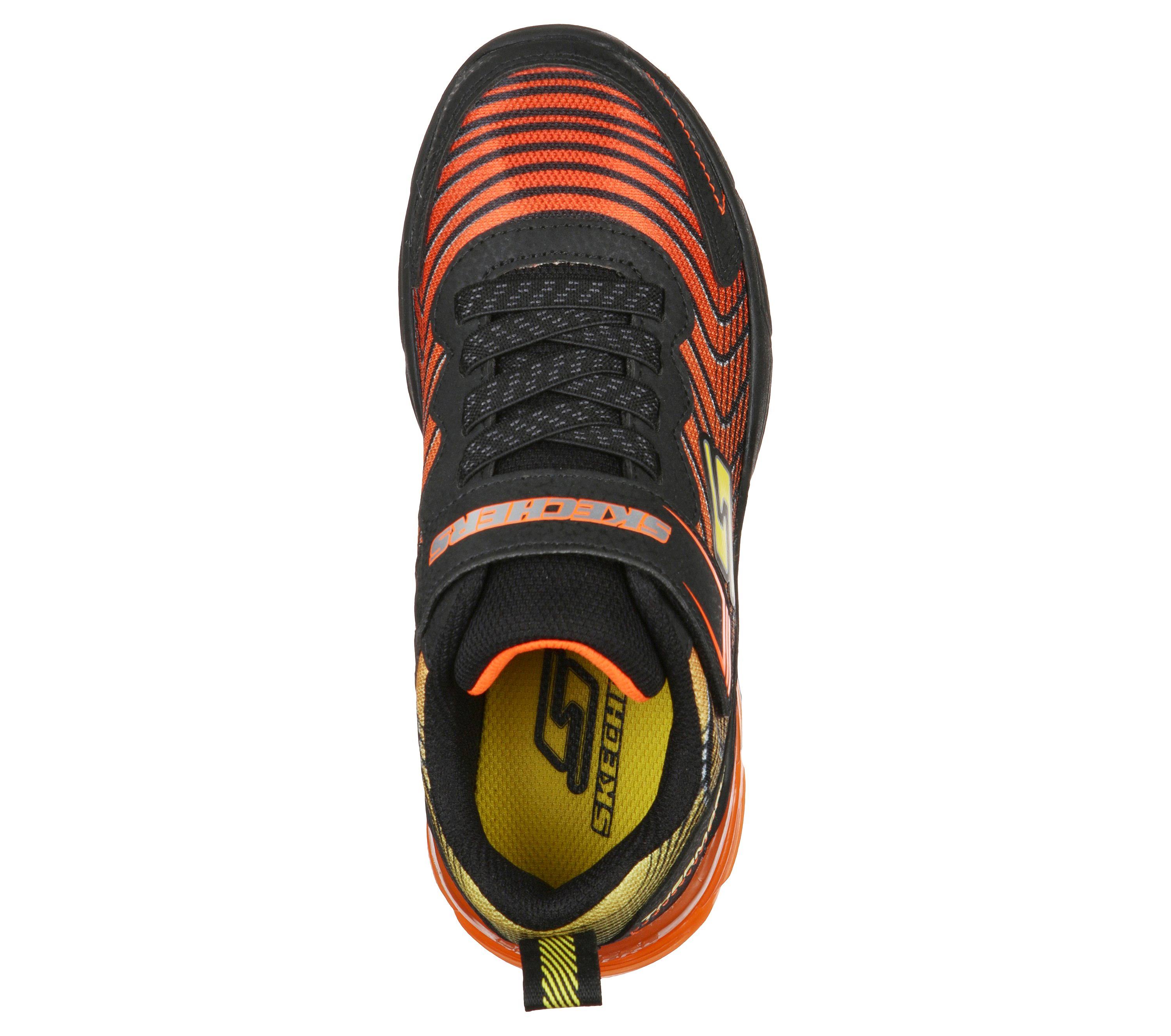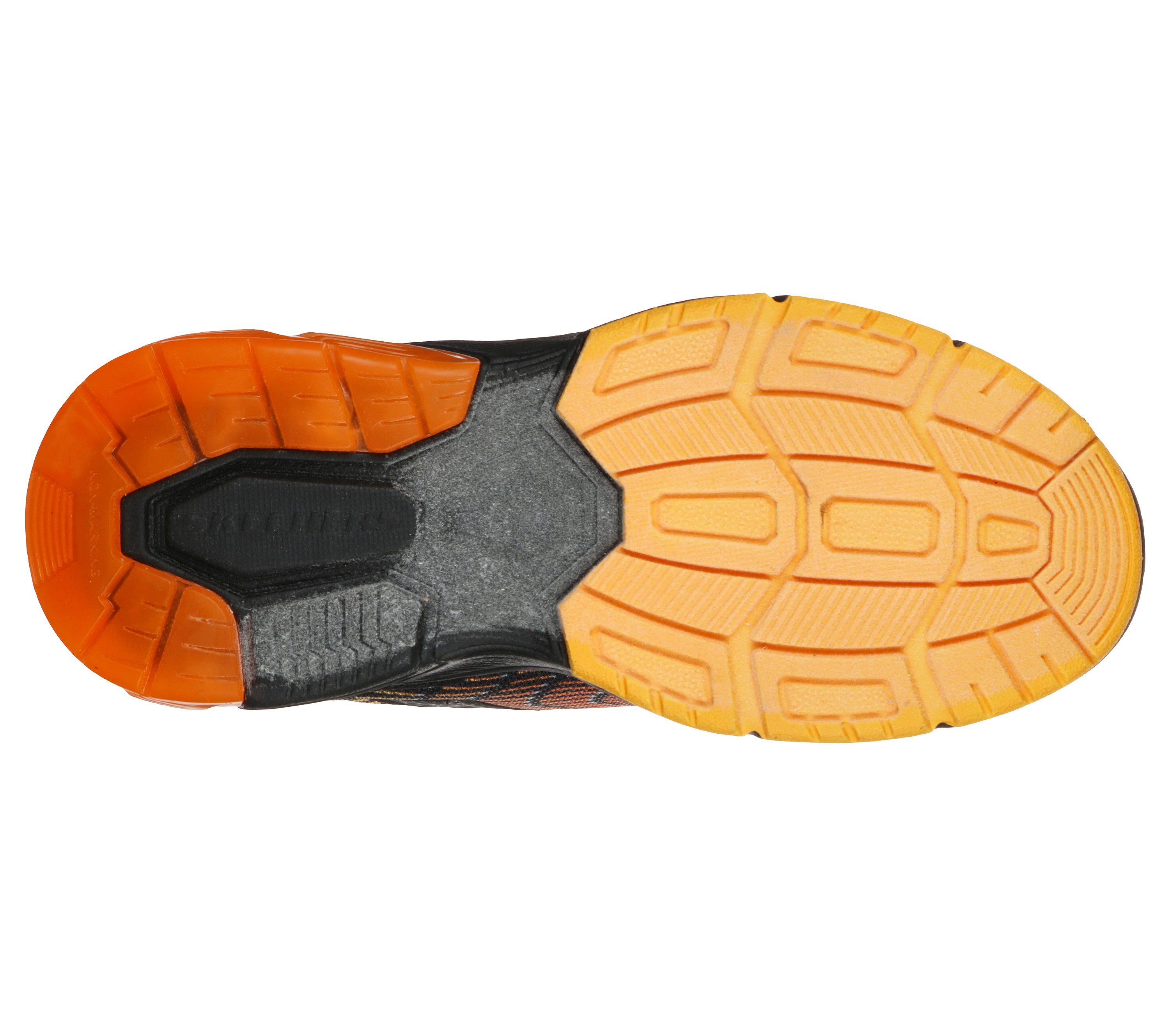 Give him some rebounding comfort and sleek sporty cool with the Thermoflux 2.0 multi sneaker from Skechers. Athletic mesh fabric and synthetic upper in a slip on stretch laced front athletic sporty training sneaker with stitching and overlay accents. Heel fabric overlay with pull on top loop. Heel fabric overlay with pull on top loop.