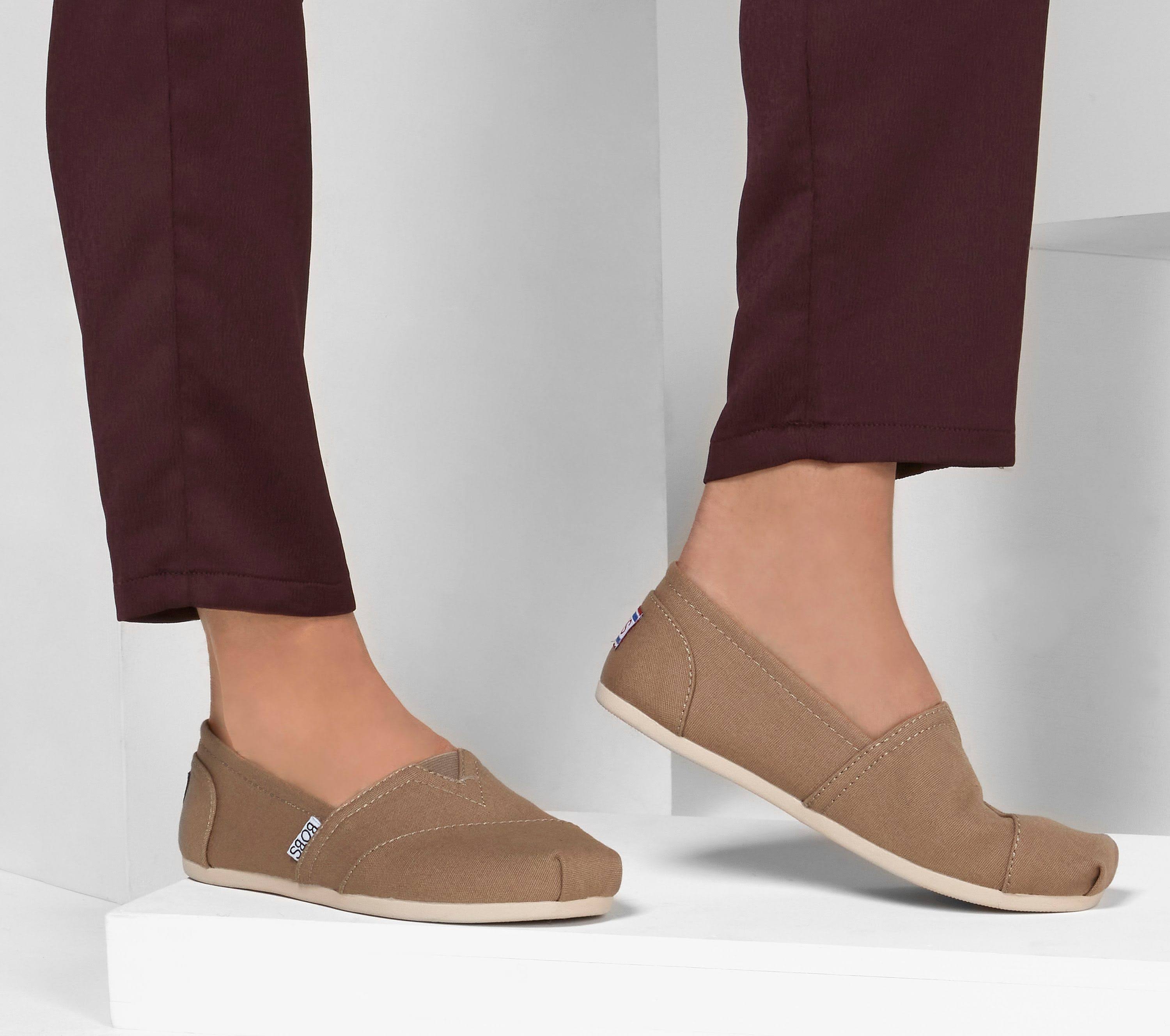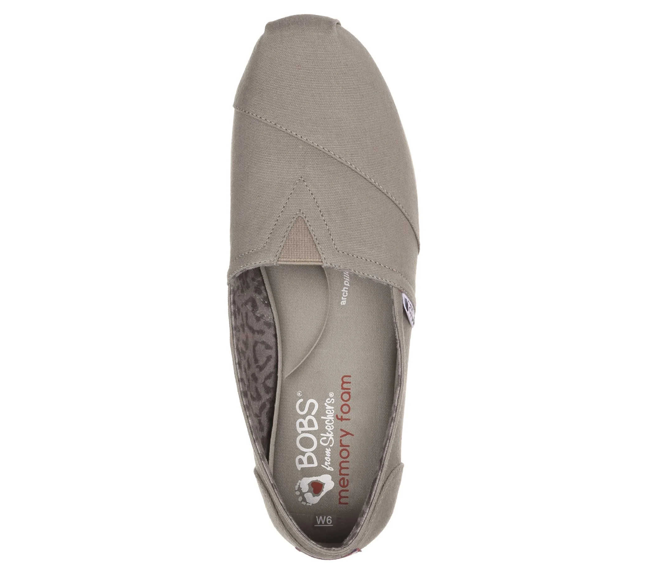 Peace, love, and plush, what more could you want in a shoe? The Skechers BOBS Plush Peace and Love alpargata delivers all three with stretchy slip-on fit, memory foam footbed, and a flexible rubber outsole. But where's the peace and love you ask? For every pair of BOBS by Skechers shoes you buy, Skechers makes a donation to animals and children in need. Good vibes, great shoes, doesn't get better than that. Canvas upper Diagonal stitching at vamp Tucked toe pleat front BOBS branding Elastic goring Fabric sockliner Memory foam cushioned comfort insole Arch pillow insole Rubber crepe outsole.