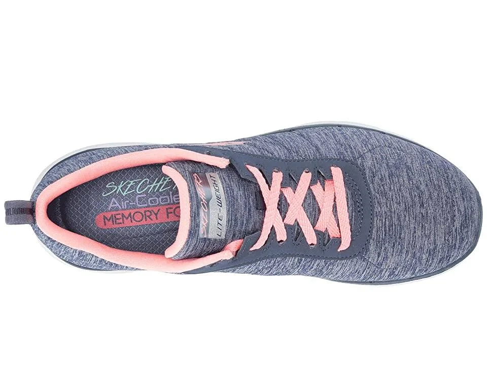 Fashion AppealAdd some soft responsive comfort and athletic style to your workout with the Skechers Flex Appeal 3.0 - Insiders shoe. Soft woven heathered-finish jersey knit fabric upper in a lace up athletic sporty training sneaker with stitching accents and Air Cooled Memory Foam insole.
