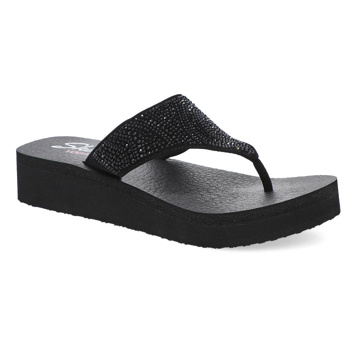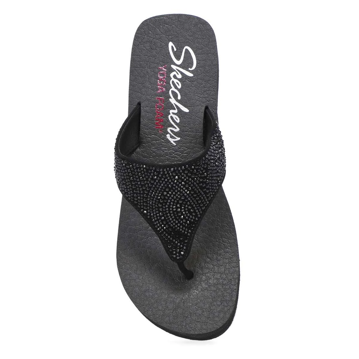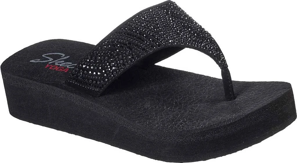 The SKECHERS Vinyasa - Stone Candy sandal lends a dose of glam to your summery-chic look with mixed rhinestone embellishments at the vamp strap, a smooth synthetic upper, and thong-style silhouette. Slip-on styling. Open-toe design with center thong post. Breathable fabric strap lining. YOGA FOAM cushioned comfort footbed for all-day wear. Lightweight flexible midsole. Flexible traction outsole. Imported. Measurements: Heel Height: 1 1 2 in Product measurements were taken using size 8, width B - Medium. Please note that measurements may vary by size. Weight of footwear is based on a single item, not a pair.