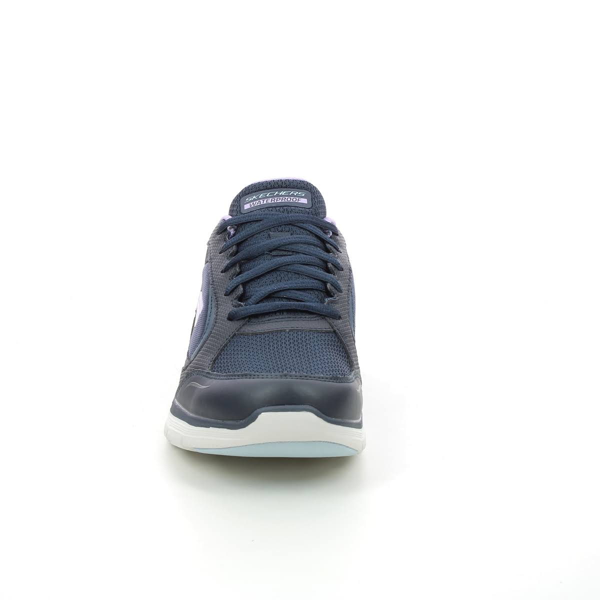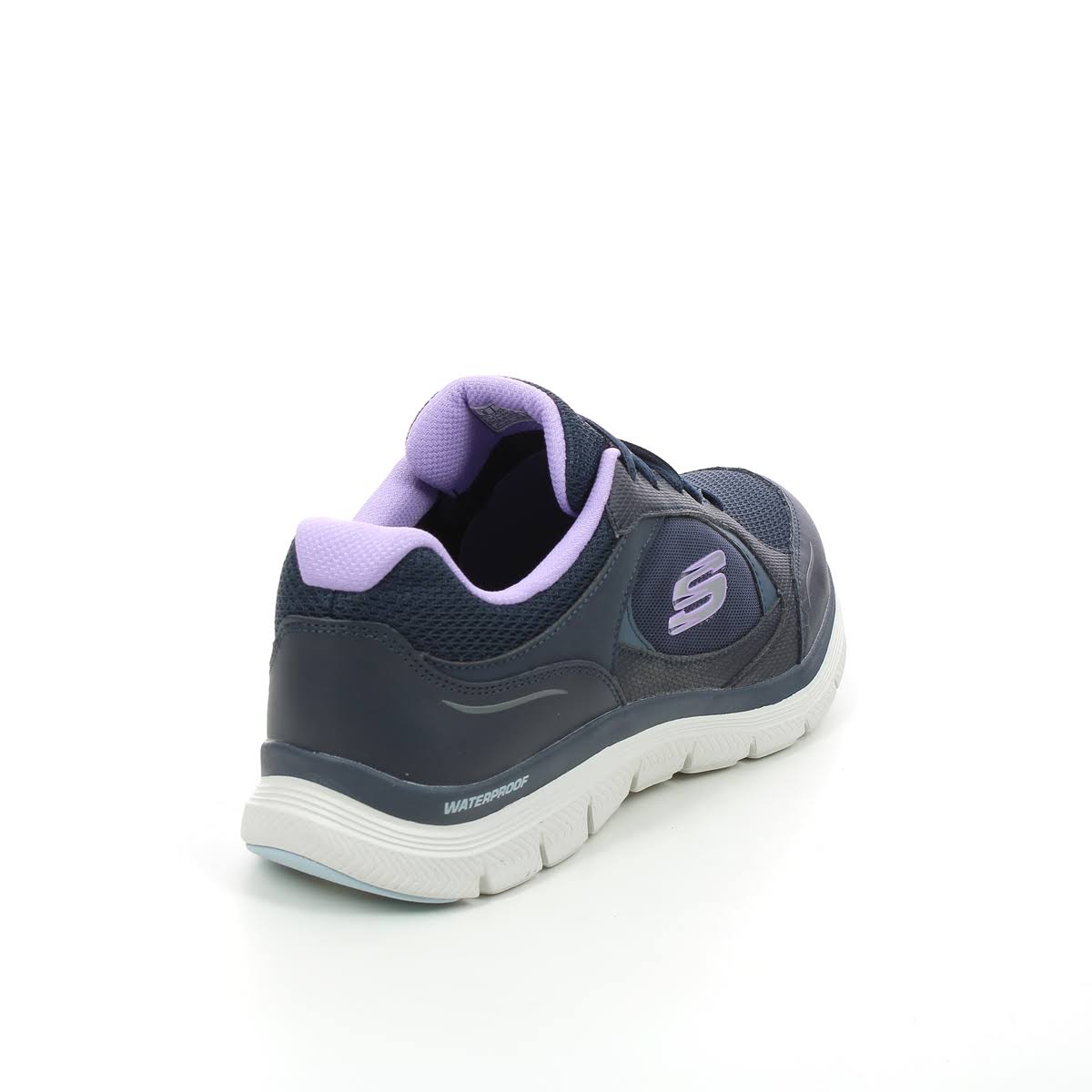 Take on the day with supportive comfort wearing the Skechers Flex Appeal 4.0 - True Clarity shoe. This athletic lace-up sneaker features a leather and synthetic mesh knit upper with a cushioned Air-Cooled Memory Foam comfort insole.