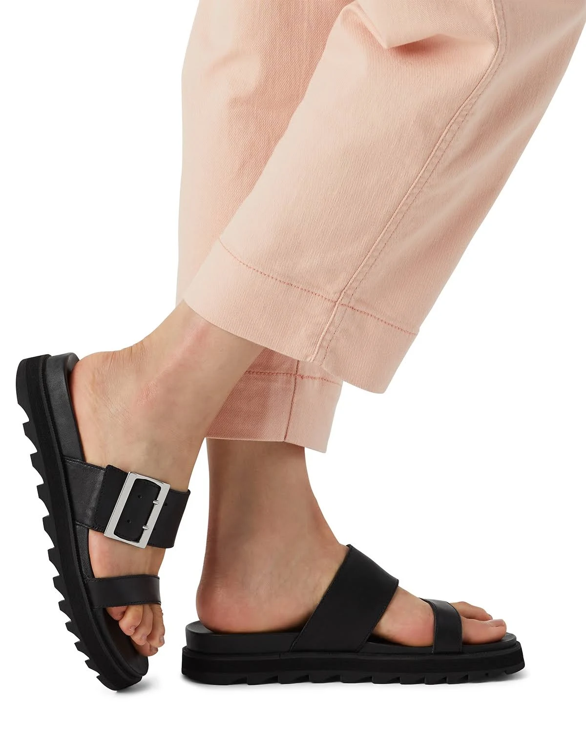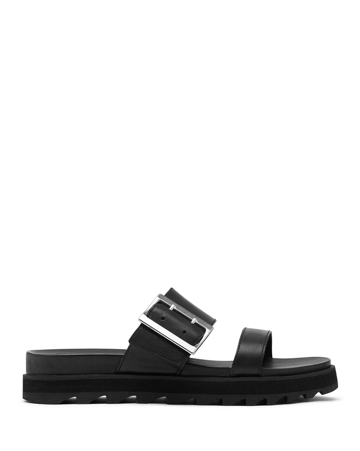 A leather slide for casual summer cruising. Easy to style with whatever the heck you want. Full grain leather upper with metallic buckle is durable and supple. Pigskin leather lining is smooth and comfortable next to skin. Rubber midsole provides light and durable support. Leather-lined footbed with EVA is extra smooth. Moulded rubber outsole has good traction.