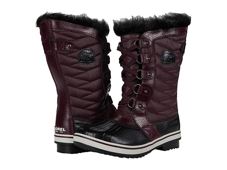 The black TOFINO II plum boot from SOREL will help make sure the cold weather never slows down her on-the-go life. Featuring a waterproof seam-sealed shell with a waxed canvas upper with PU coated leather overlays. Removable molded EVA footbed with 100g Thinsulate insulation. Lace-up closure with D-ring eyelets. Rubber outsole provides excellent traction.