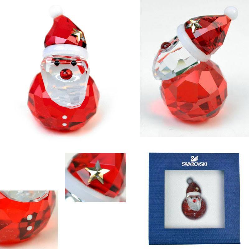 Swarovski 1143323 red & clear crystal rocking Santa figurine carries dimensions of 1" inches wide and 1-1/2" inches high. Swarovski 1143323 features rocking Santa is crafted from red toned Light Siam and clear crystal. Swarovski 1143323 Santa jet crystal eyes and a clear crystal beard for a brilliant contrast. Push him gently and watch him rock from side to side. This charming character is the perfect companion for the Rocking Reindeer and other rocking objects. Designed by Verena Castelein. This Rocking Santa figurine is a decorative object and not a toy. Not suitable for children under age 15.