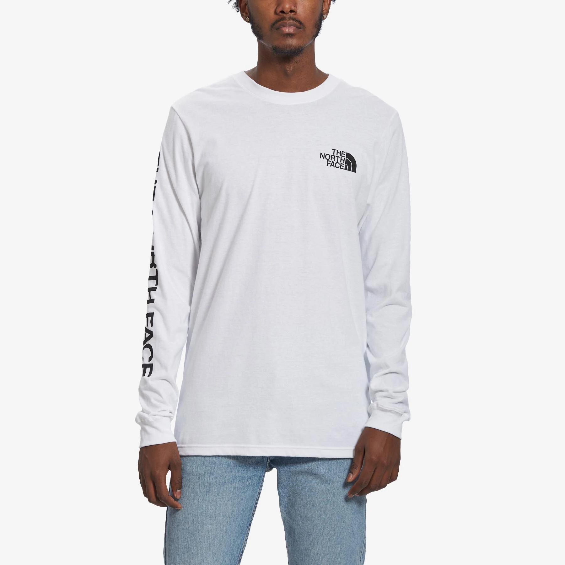 Soft cotton tee features The North Face logo screened at left chest with large version screened along right sleeve. Ribbed crew neckline and cuffs. Long sleeves. 100% cotton. Machine wash. Imported.