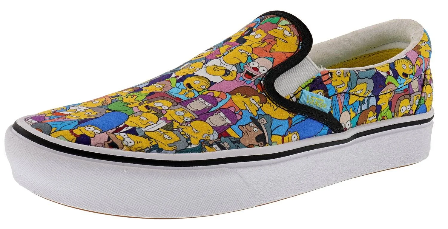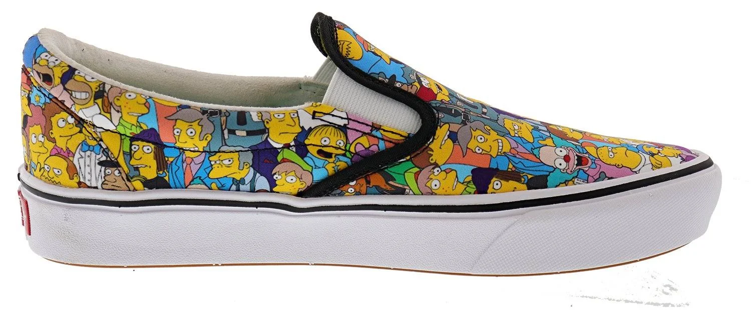 Immerse yourself in the world of The Simpsons as Vans pays tribute to America鈥檚 favorite family. Part of a radical collection of footwear, apparel, and accessories, The Simpsons x Vans ComfyCush Slip-On reinvigorates the iconic Classic Slip-On silhouette with ComfyCush technology and an allover print featuring the entire Springfield gang. Made with a new softer, cushiony outsole that gives the ComfyCush Slip-On a first-class fit that feels like walking on a cloud, The Simpsons x Vans ComfyCush Slip-On utilizes a co-molded construction of foam and rubber for the perfect combination of both comfort and grip, rubber outsoles offering durability and traction, and simplified one-piece interiors with added arch support. It also includes moisture-wicking lining materials throughout the interior of the shoe, and newly constructed uppers that focus on tongue stabilization.