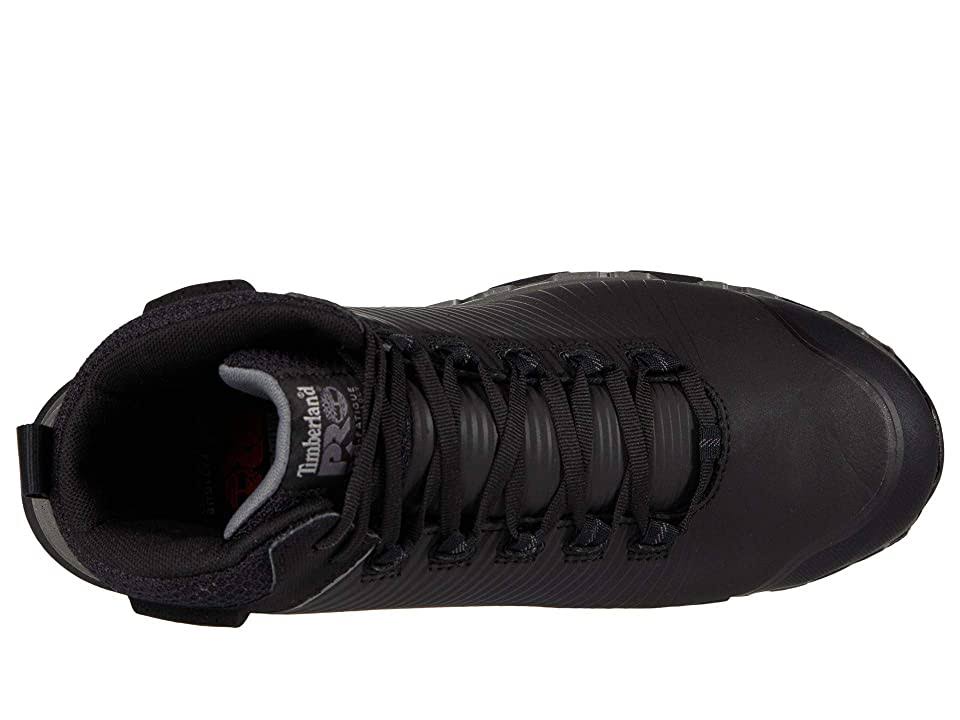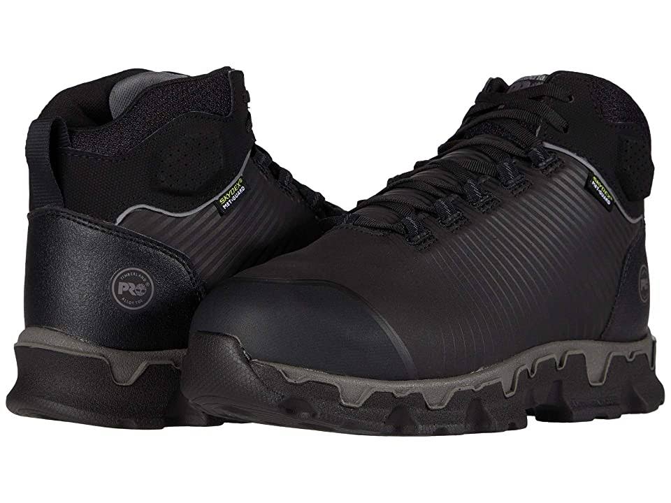 Have confidence in your footwear when you wear the Timberland PRO Powertrain Sport. This black mid-height men's work boot gives you athletic styling with protective features designed to handle the demands of a light industrial work environment. The Powertrain Sport delivers on safety. An ASTM-approved alloy safety toe gives this shoe a nice profile and plenty of wiggle room for toes. Protection extends over the metatarsal bones of feet with a SKYDEX internal metatarsal (met) guard featuring SmartHinge technology that is flexible for everyday wear, yet hardens upon impact. The shoe also provides ASTM-tested resistance to secondary electrical hazards underfoot. A non-marking BASF Polyurethane outsole gives you flexibility and traction without weighing you down. And this outsole is oil, slip, abrasion and heat resisting up to 248 degrees F. An Ever-Guard-treated black leather upper is highly abrasion-resistant, yet is smooth and wipeable. This 5-inch lace-up shoe a padded collar and tongue, supporting the Achilles and ankle areas and helping to keep you stable. Timberland PRO's Anti-Fatigue Technology reduces shock and return energy to the foot with a molded-EVA midsole that absorbs impact and a nylon shank for arch support. Mesh lining with antimicrobial treatment controls odor. The removable contoured single-density open-cell polyurethane footbed has an antimicrobial cover for breathable comfort and additional odor control. Be prepared for your daily changes with a safe, durable work boot that is comfortable to wear. Get your Timberland PRO men's Powertrain Sport work boots today.