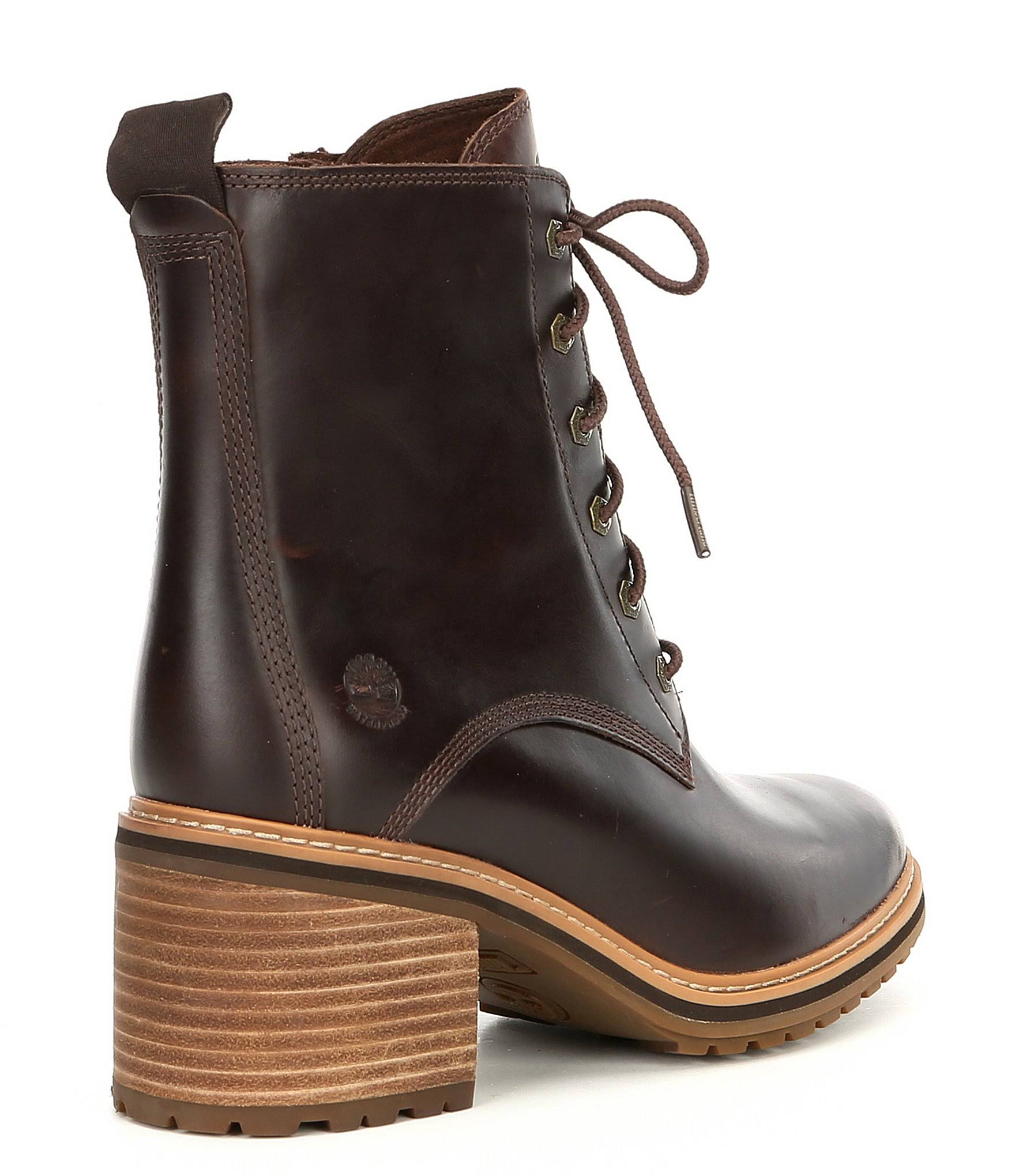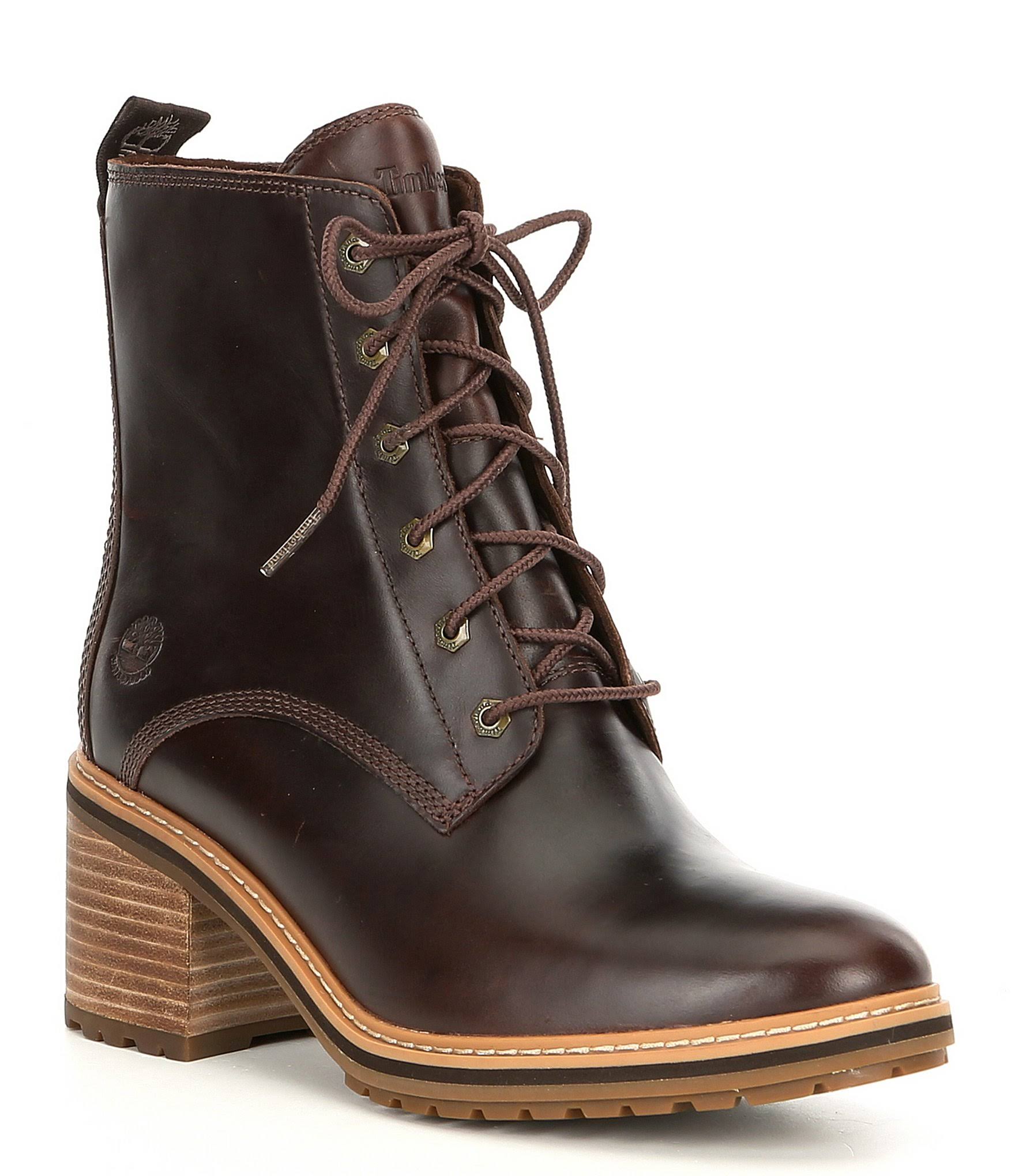 With 2.5-inch heels, enjoy dressing them up and down, and they also feature side zips so you don't have to lace them every time. Premium waterproof leather uppers from a Silver-rated tannery. Round toe. Lace-up with side zipper detail. Waterproof membranes. Leather welts. EVA midsoles. Rubber outsoles. Size: Stacked block heel, 2.5" (63.5mm). Shaft,.