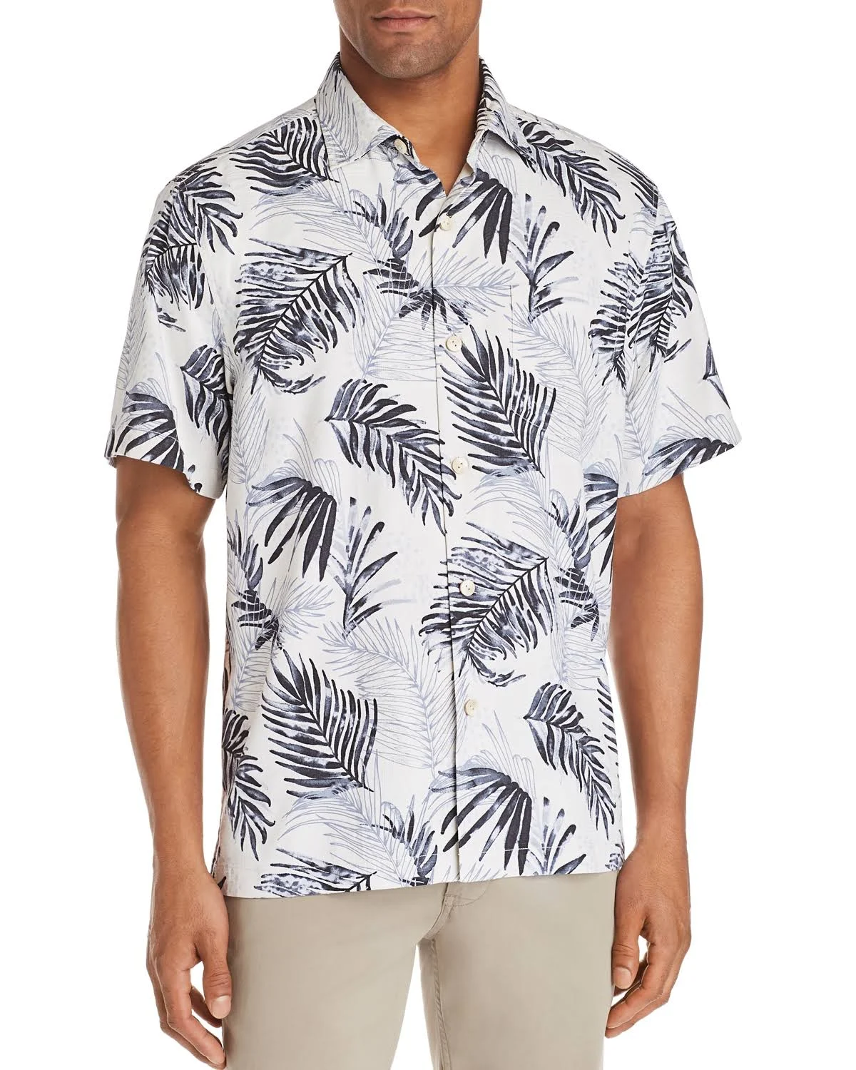 Fronds float in a fun pattern for this luxurious, silk-blend camp shirt. You'll look and feel effortlessly cool thanks to the COOLMAX polyester that helps you feel cool even when the temperatures rise.