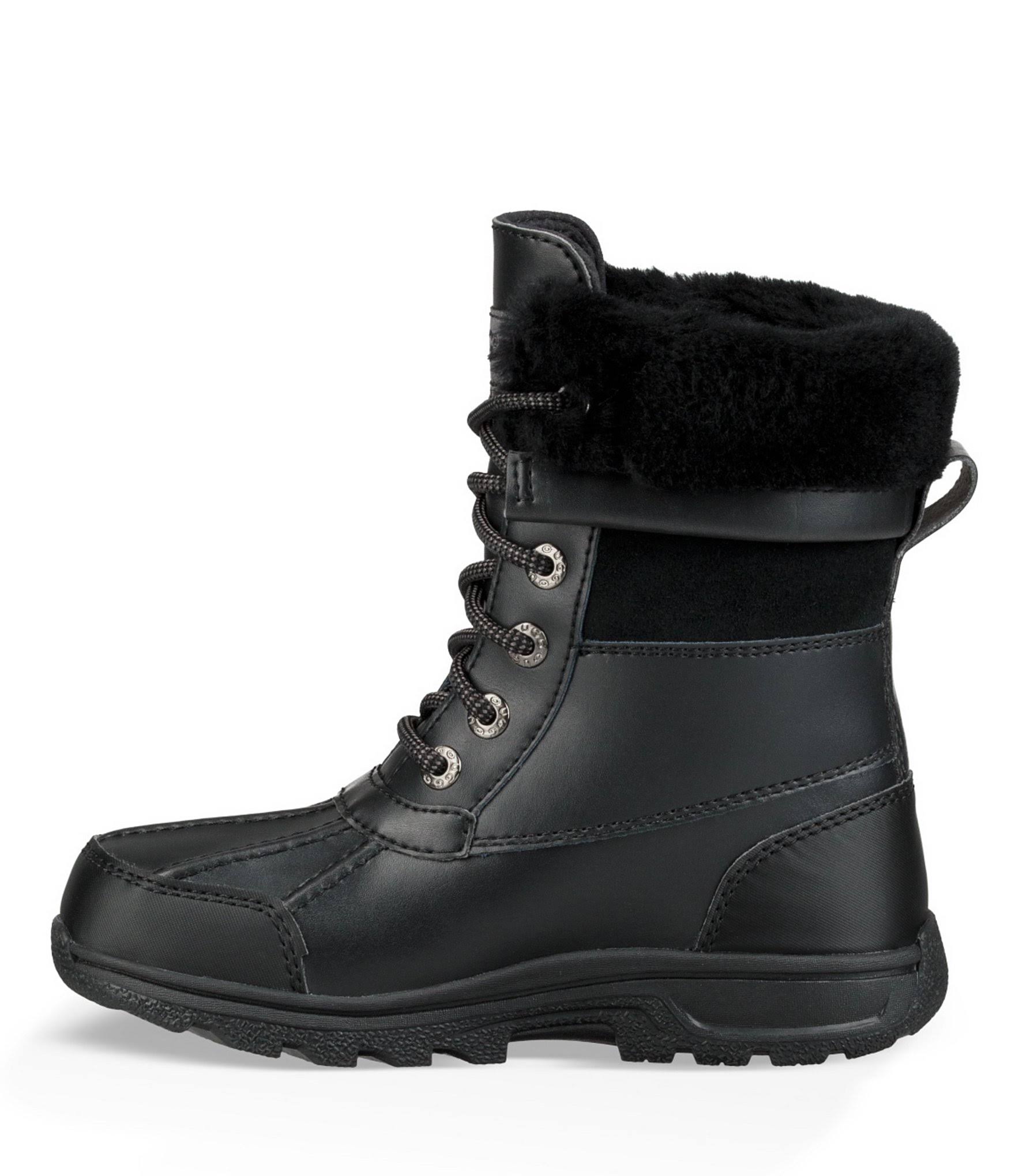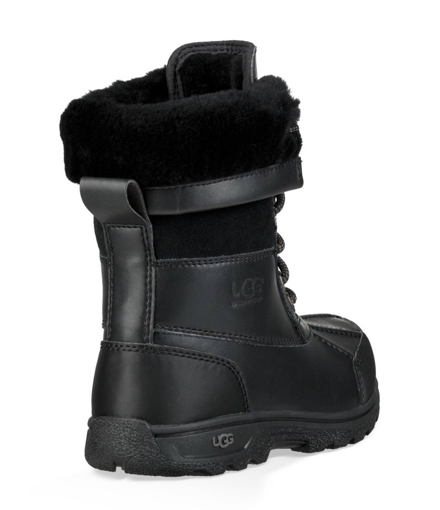Real winter boots to go from the ski hill to the playground. Lined with super-soft wool and layered with Thinsulate synthetic insulation, these boots are ready for winter’s worst. Waterproof construction keeps little puddle-jumping feet dry. And, a chunky tread provides great grip on slippery terrain. Waterproof leather and suede, with an additional waterproof bootie underneath. Insulated with UGGpure premium sheep’s wool woven into a durable synthetic backing. UGGpure lining and insole help wick moisture to keep feet warm. 200-gram Thinsulate synthetic insulation is light and efficient. Cuffable shaft adds a few extra centimeters of warmth on really cold days.