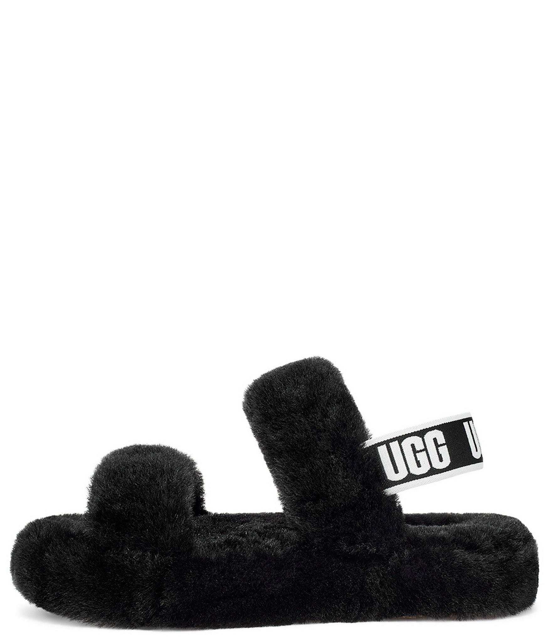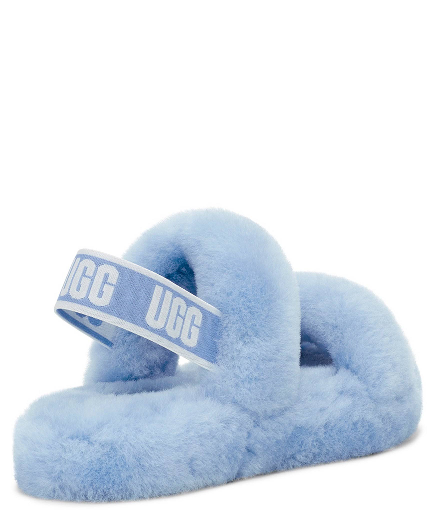 Keep them cosy in these childrens' Oh Yeah Slides from UGG. In a Shadow colourway, these slides are made from sheepskin on the upper and through to the lining for next level comf'. They feature a light midsole for responsive cushioning with a rubber tread for grippy traction. Signed off with an UGG branded strap for easy on-and-off.
