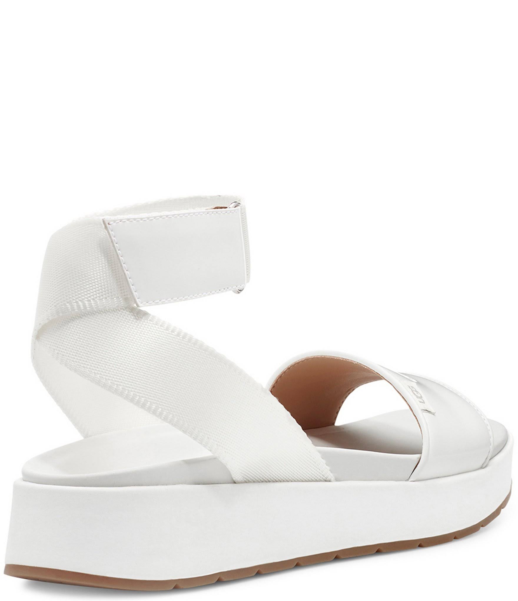UGG Women's Lennox Sandal, White, 8 - Our Lennox is a versatile, strappy silhouette made from glossy patent. A minimalistic, solid-tone design that complements nearly any outfit, this summery sandal style features ankle straps which buckle-adjust for the perfect fit. Pair it with everything from shorts to skirts to floral dresses.