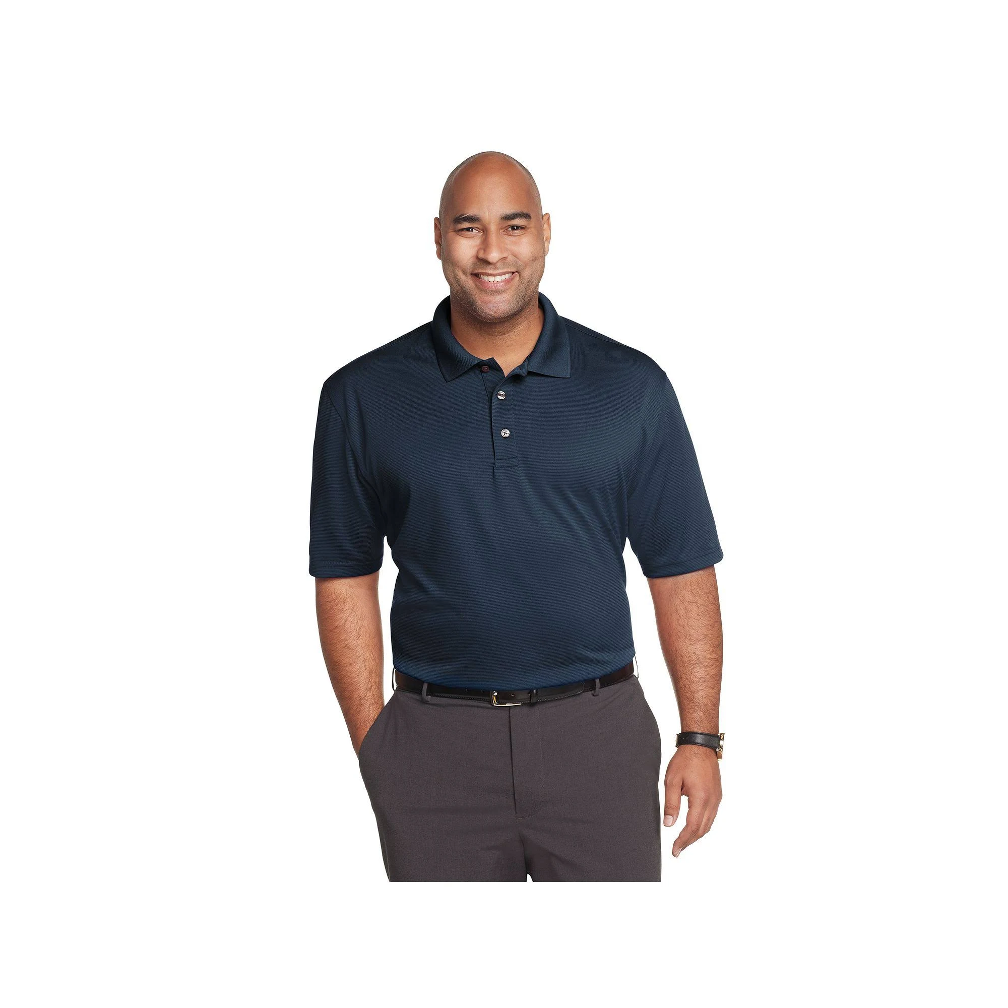 Lightweight and made for motion. This Van Heusen Air polo shirt has a ribbed fabric for texture and depth as well as a flat knit rib collar that adds an extra dash of style for a smooth, polished look. Best of all, this style has moisture-wicking properties that keep you dry and feeling cool.