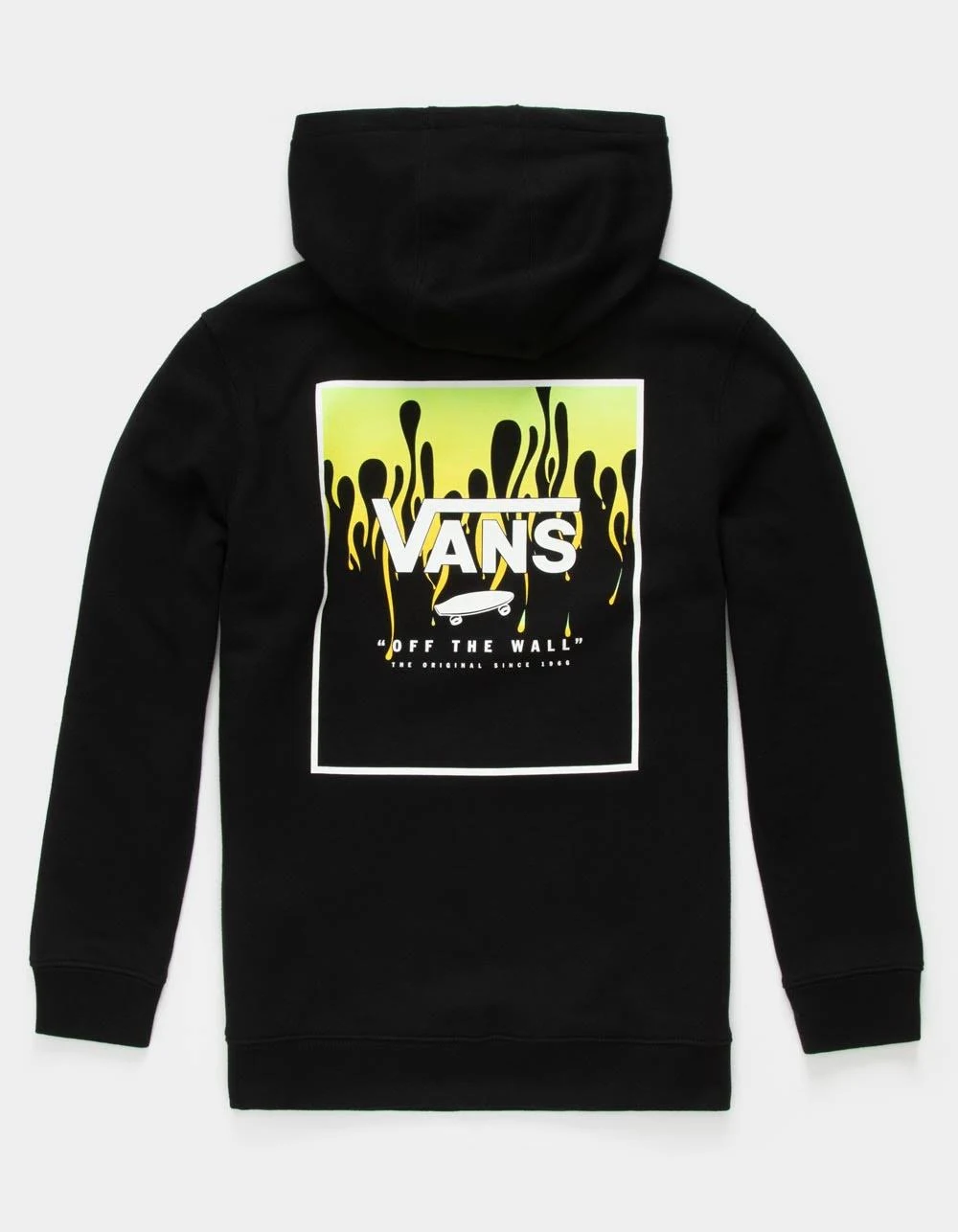 The Boys Print Box Back Pullover Hoodie is a 60% cotton, 40% polyester French terry pullover hooded sweatshirt with a front pouch pocket, a left chest logo, and back box logo graphics filled with a slime print. Machine wash. Imported.