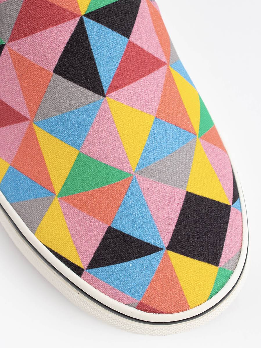 Faith Ringgold's 'The Windows of the Wedding' series inspires a geo-patterned canvas slip-on wrapped in bright colors and a bold feminist spirit. The Museum of Modern Art turns creative ideas from its collections and curators into bright, wearable designs in this inventive collaboration with skatewear icon Vans. Style Number: 6032947.