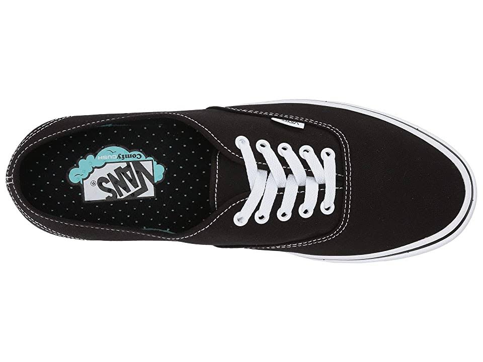 Super lightweight Authentic skate shoes from Vans ComfyCush range The Vans ComfyCush Authentic a super-lightweight version of the original Authentic skate shoe. It combines the classic Vans styling with new technology to increase comfort and improve functionality.The midsole made from ComfyCush foam, which offers supreme cushioning and impact absorption, as well as increased arch support. The foam co-molded to the rubber sole unit, providing reliable grip across all kind of surfaces. The 6oz canvas upper features one-piece interior construction to minimise seams and stabilise the tongue. It also lined with moisture wicking fabric for extra comfort and temperature regulation.