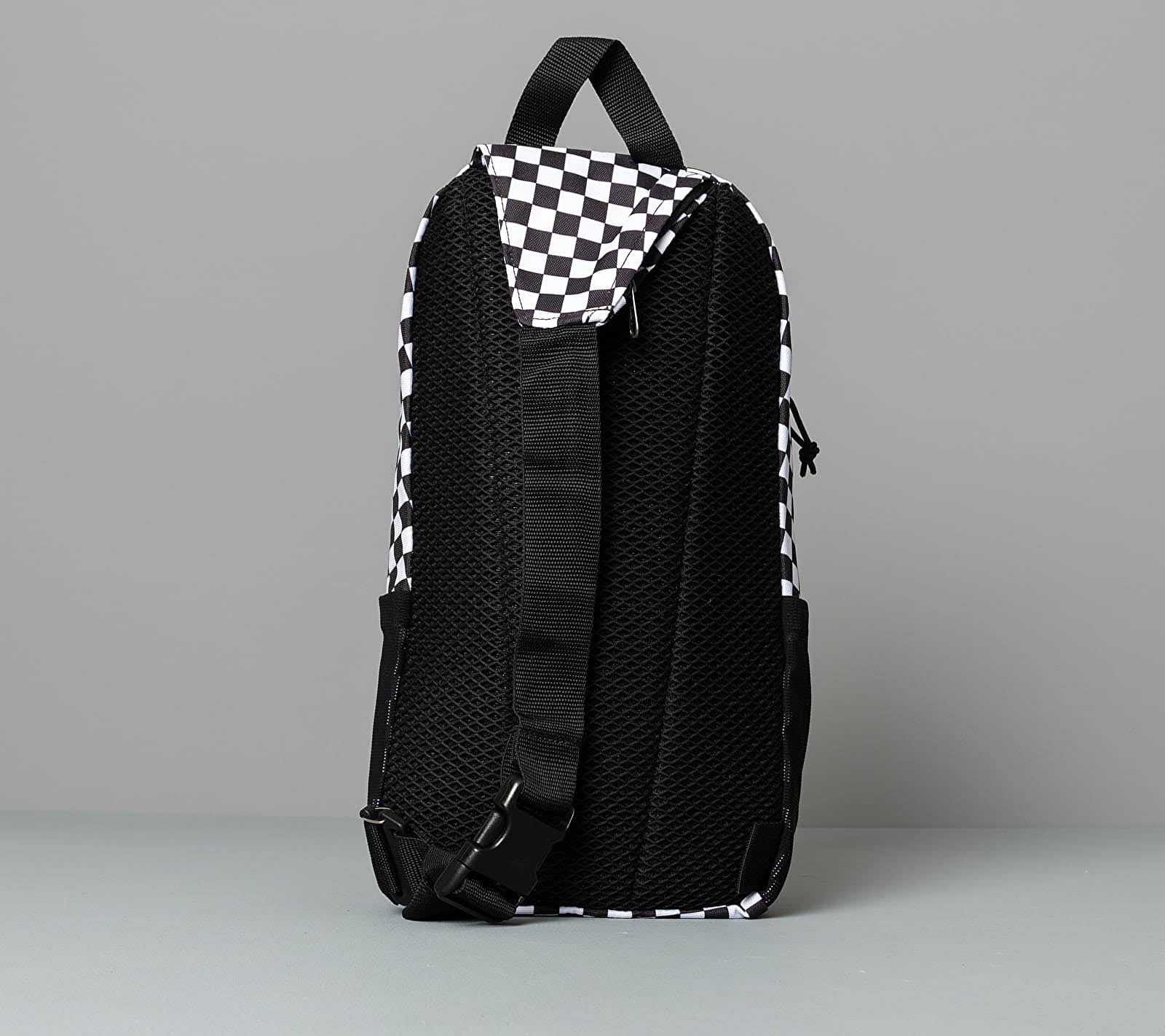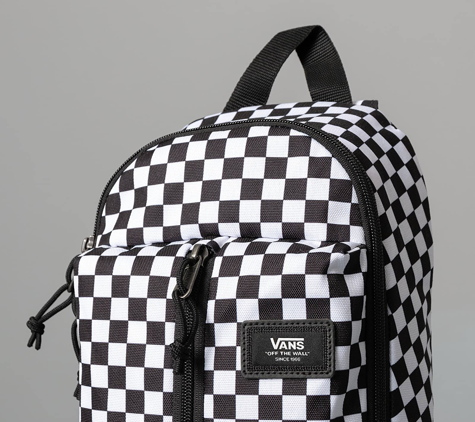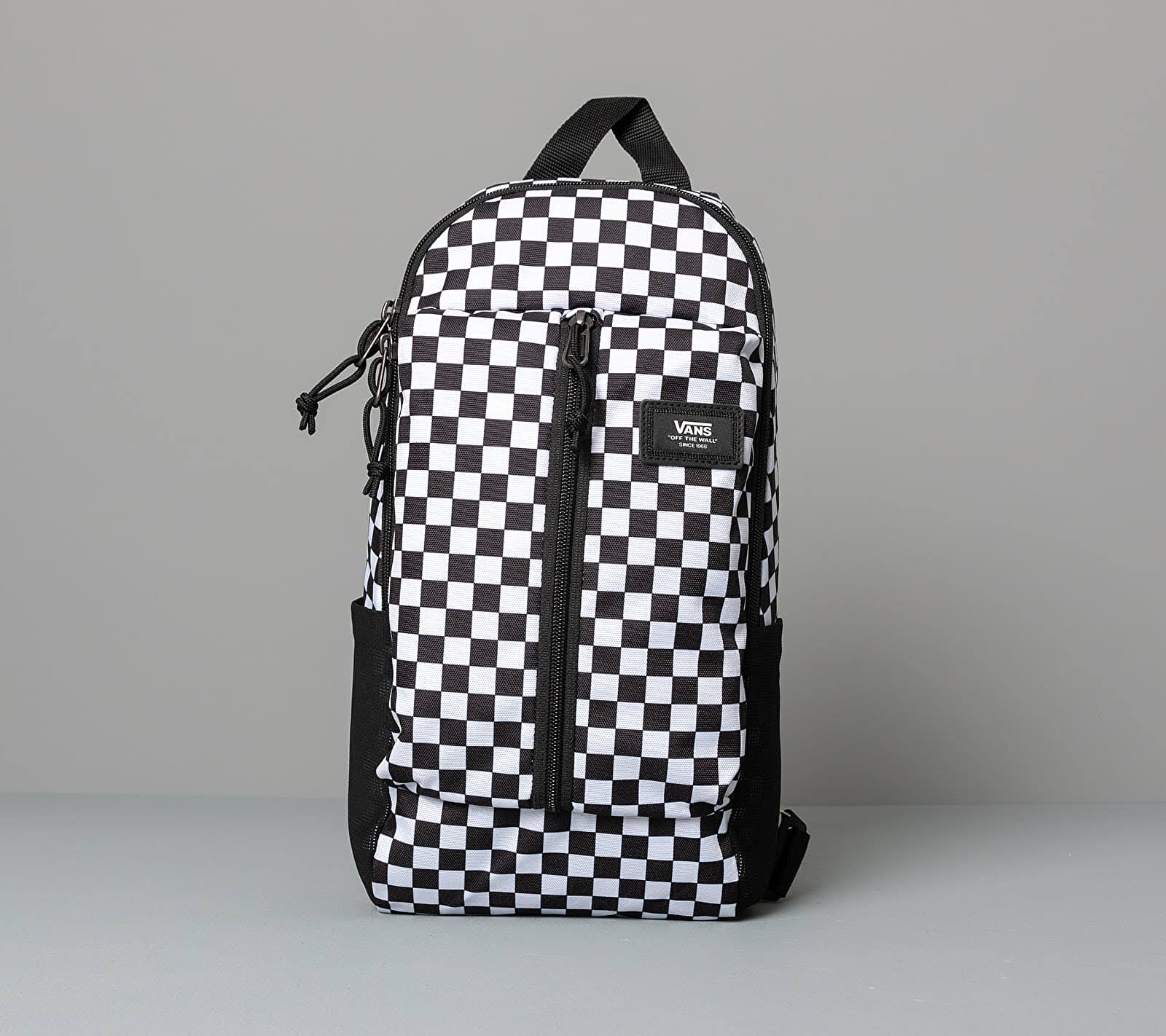 Vans Warp Sling Bag Black / White / Checker VN0A3I6BHU0 The Warp Sling Bag is a 100% polyester sling bag featuring a padded tablet compartment that fits most 10? tablets, an exterior zip pocket, an exterior stash pocket, and adjustable shoulder straps. It also includes stretch mesh water bottle pockets, and a waffle mesh back panel. Measuring 10 L x 8 W x 4 D inches, it has an 11-liter capacity.