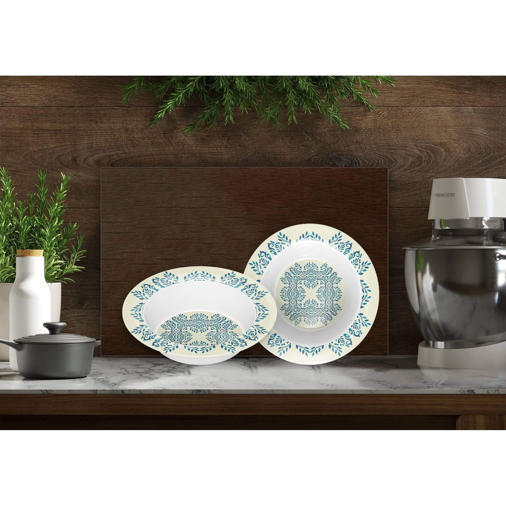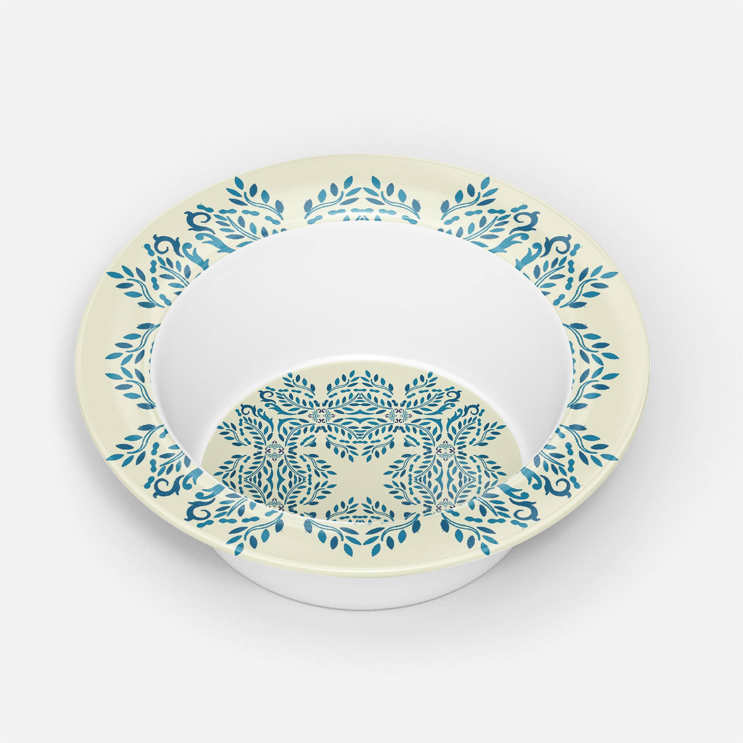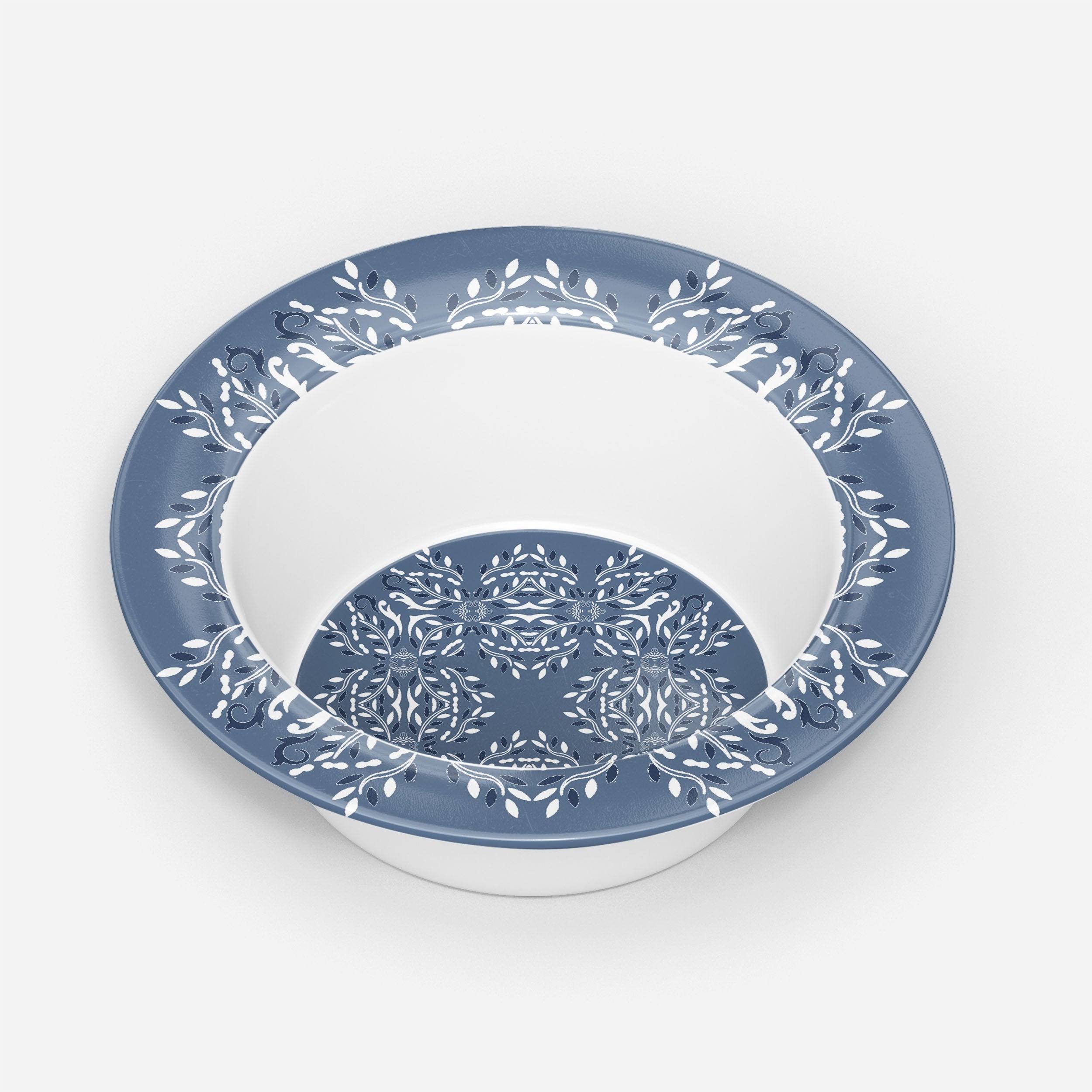 Window Wreath Palace 10x22 Microwave Safe Thermosaf Soup Bowl in LT Blue Navy Blue