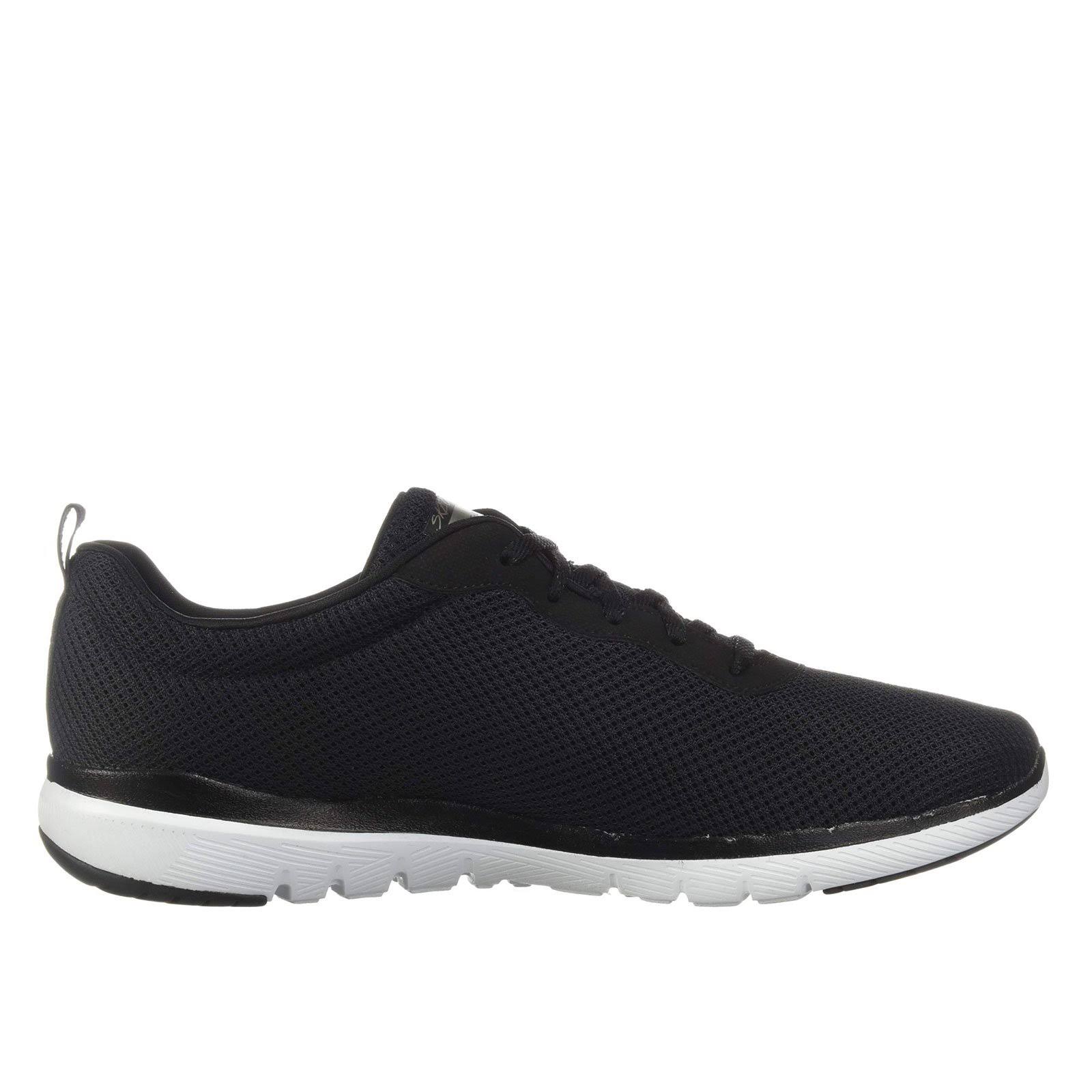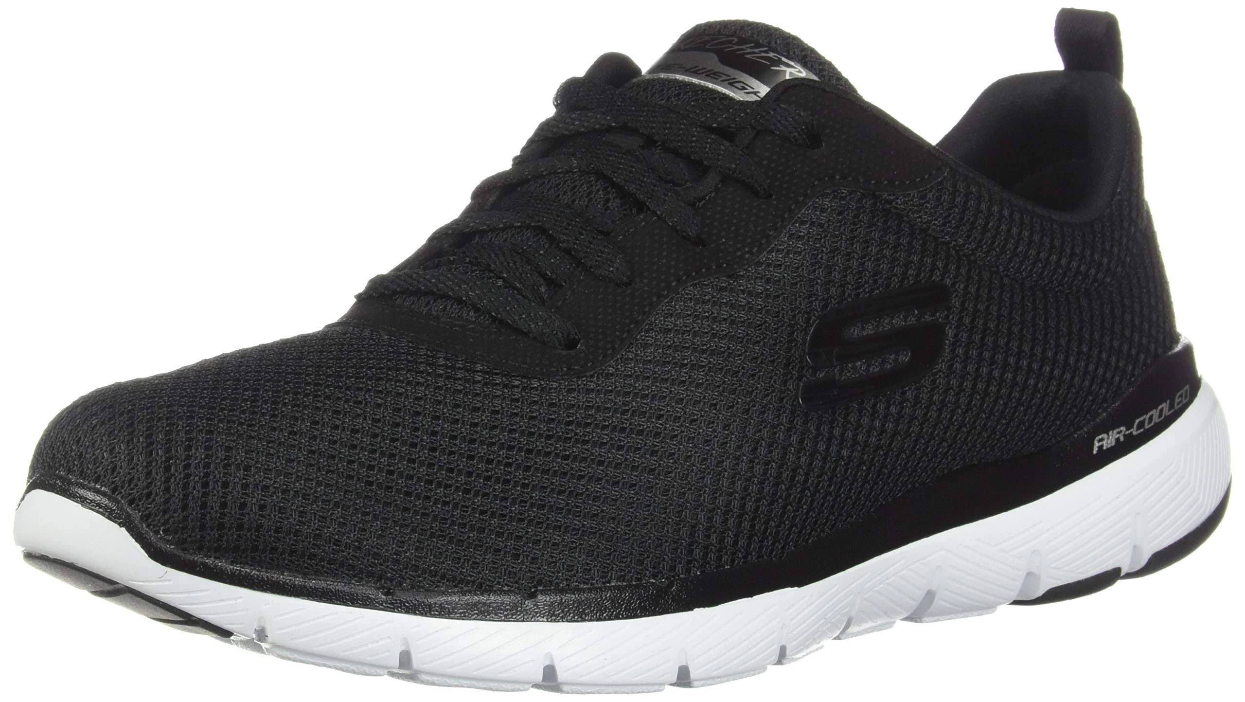 The sporty SKECHERS Flex Appeal 3.0 sneaker will complement your casual look with a knit fabric upper, woven stability panels, and optimal cushioning. Lace-up construction provides a secure fit. Round toe with sturdy reinforcement. Padded collar and tongue for added comfort. Signature logo accents throughout. Soft fabric lining. Air Cooled Memory Foam cushioned insole offers long-lasting wear. Air Cooled, shock-absorbing midsole featuring colored stripe accent. Flexible traction outsole. Imported. Measurements: Weight: 7 oz Product measurements were taken using size 9, width B - Medium. Please note that measurements may vary by size. Weight of footwear is based on a single item, not a pair.