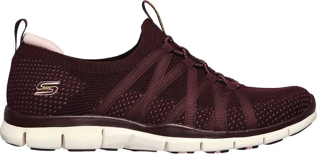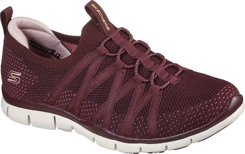 A sleek design with stretchable comfort looks and feels entirely original in the Skechers Gratis - Chic Newness shoe. Soft woven engineeered knit fabric upper in a slip on bungee laced sporty casual comfort sneaker with Stretch Fit design, stitching and overlay accents. Air Cooled Memory Foam insole.