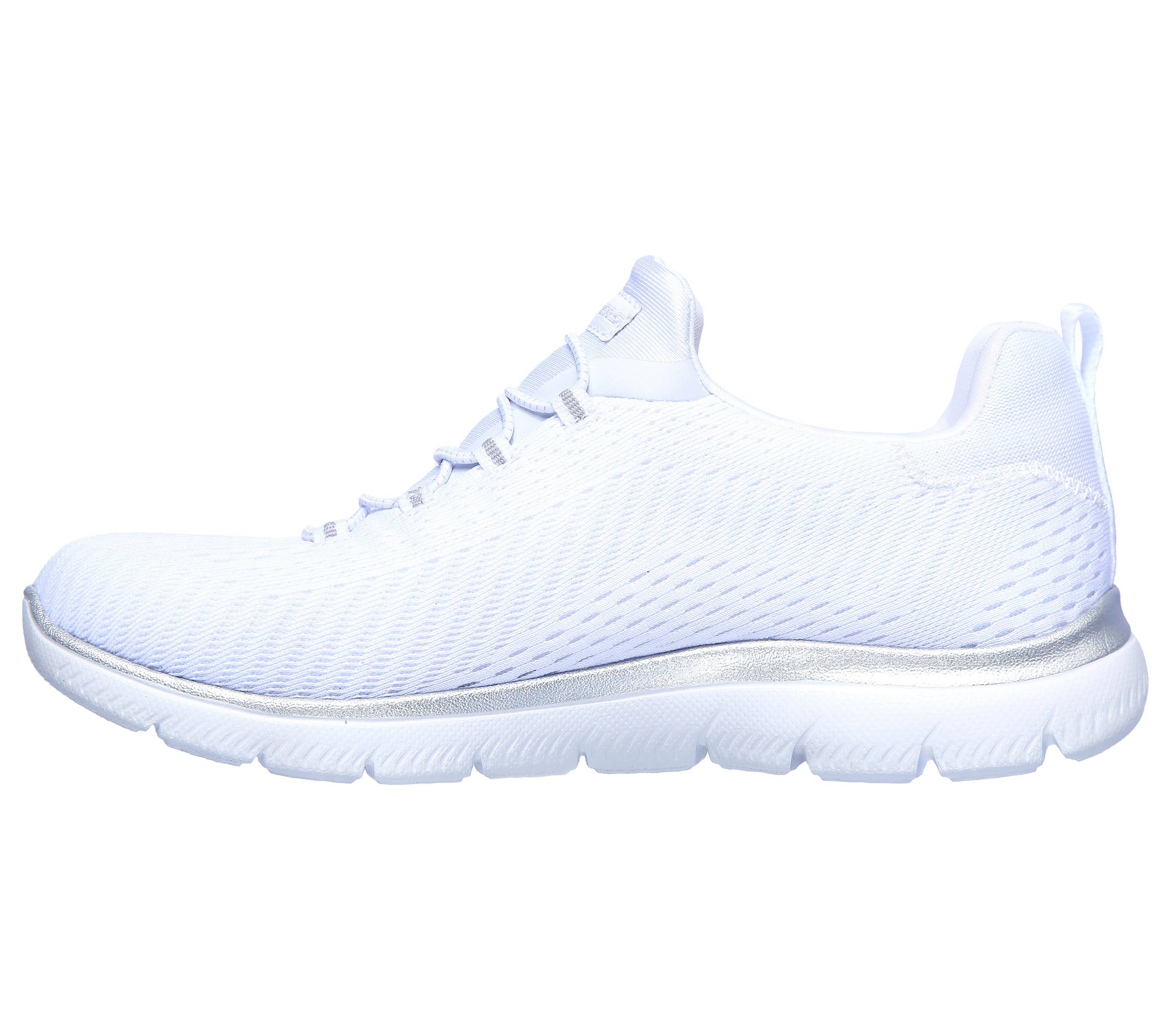 Discover shoe love at first sight with the Skechers Summits Fast Attraction Sneaker. This sporty trainer features a bungee stretch fabric laced instep panel for an easy slip-on fit. The memory foam full-length cushioned comfort insole and lightweight, flexible, shock-absorbing midsole keep your feet at ease no matter what you do. Soft engineered knit mesh fabric nearly one piece upper Knit-in detail at toe, sides and heel Bungee stretch fabric laced instep panel Padded collar and tongue Soft fabric lining Memory Foam full length cushioned comfort insole Lightweight, flexible, shock-absorbing midsole Flexible traction outsole.
