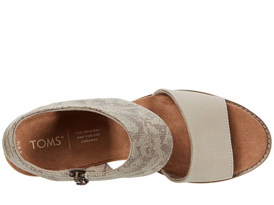 With a leather wrapped heel and an inside zipper, TOMS Majorca Cut-Out Sandal is the perfect addition for your warm weather outfit. Two-piece stacked heel sandal Uppers in suede and textile mix Ankle cuff with interior side zip for ease of entry OrthoLite X40 high rebound cushioned insole for all-day comfort Leather welt and stacked leather wrapped heel Rubber outsole Heel height approximately 3 inch.